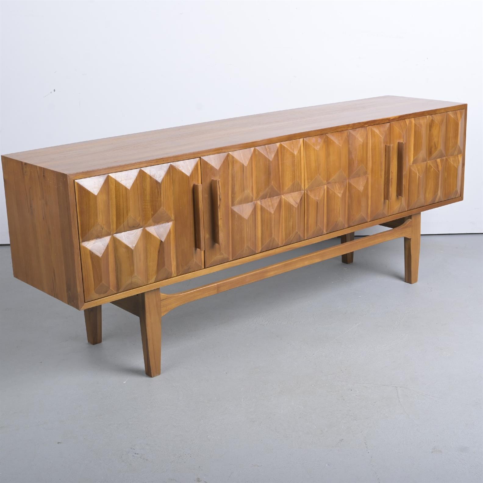 A DIAMOND PATTERN TEAK SIDEBOARD (70H X 180W X 42D CM) (THIS ITEM MUST BE REMOVED BY CARRIERS AT THE CUSTOMER'S EXPENSE. LEONARD JOEL STAFF CANNOT ASSIST CARRYING THIS ITEM.)
