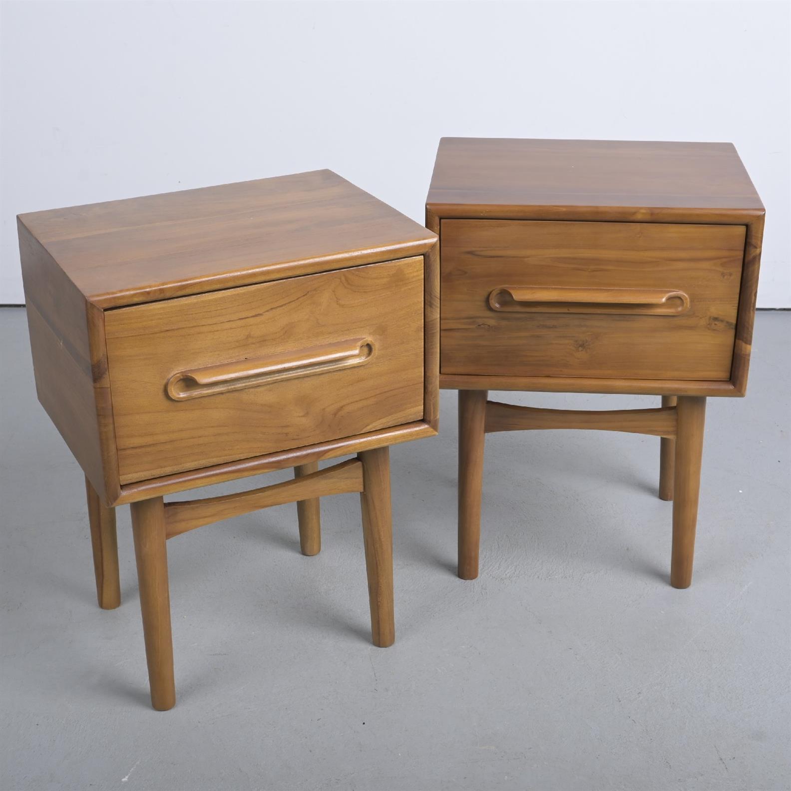 A PAIR OF 1970s-STYLE TEAK BEDSIDE TABLES (55H X 40W X 35D CM)