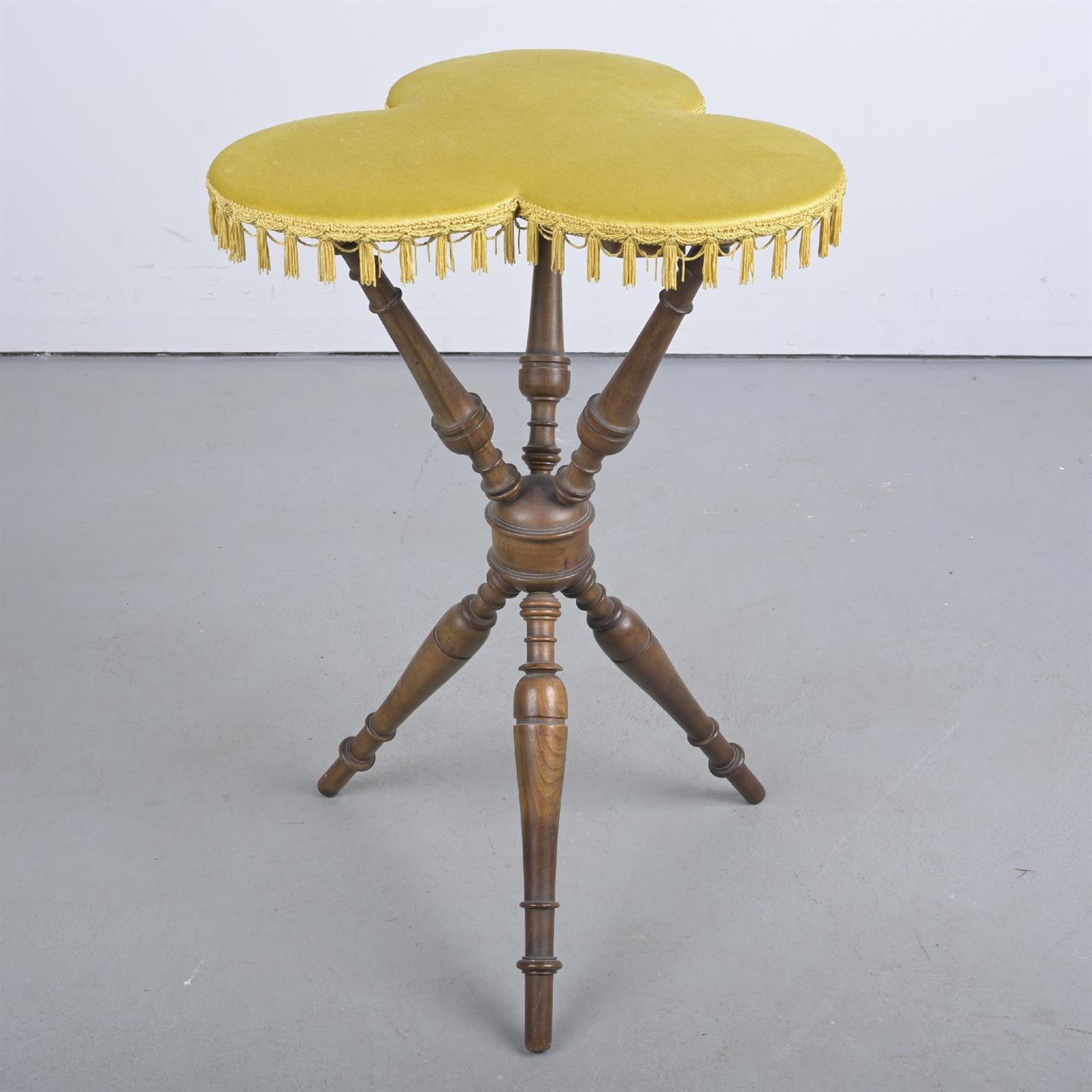 A TRI LEGGED OCCASIONAL SIDE TABLE WITH AN UPHOLSTERED TOP (A/F) (75H X 50W CM)