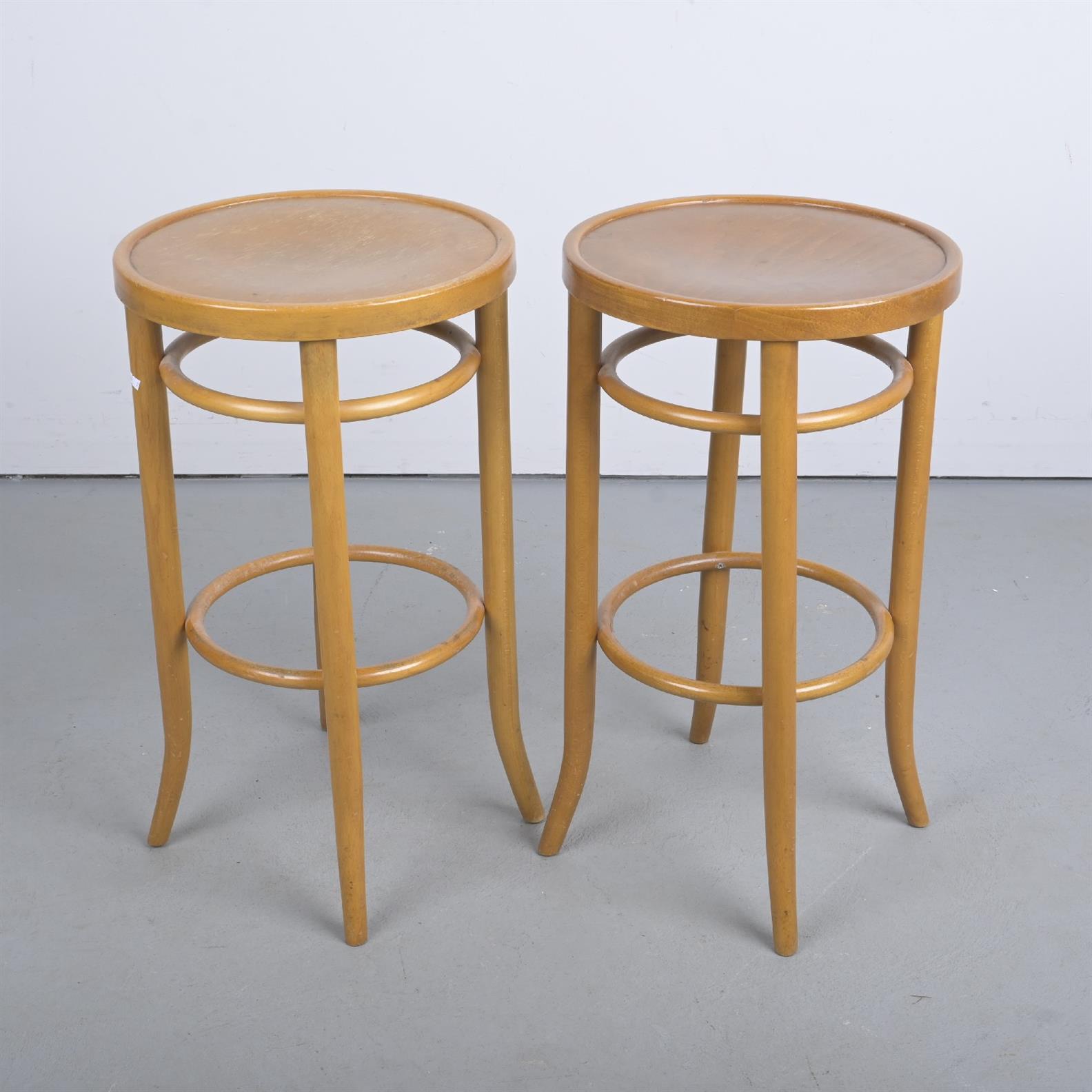 A PAIR OF BENTWOOD BARSTOOLS (70H X 40DIA CM)