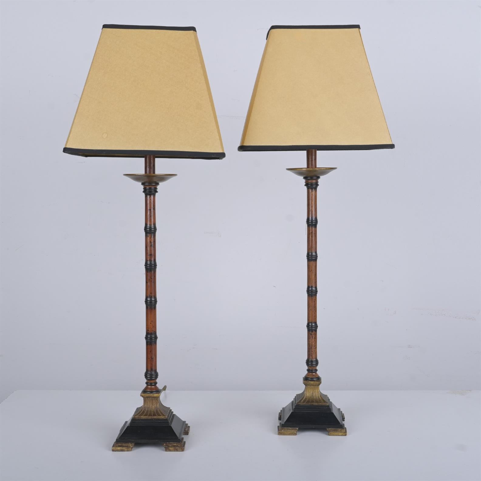 A PAIR OF FAUX BAMBOO TABLE LAMPS (85H CM)