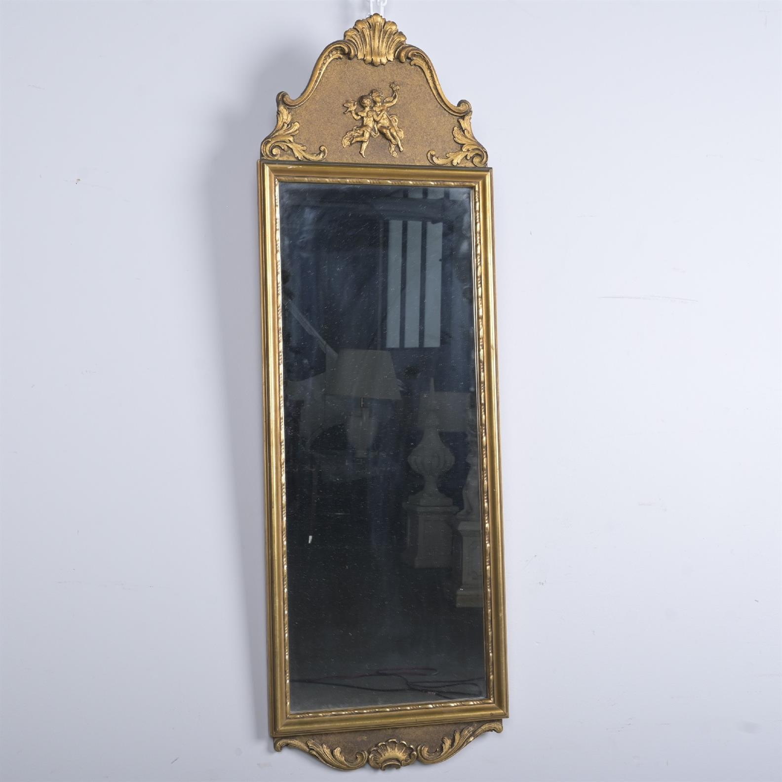A SMALL GILDED MIRROR (115H X 36W CM)