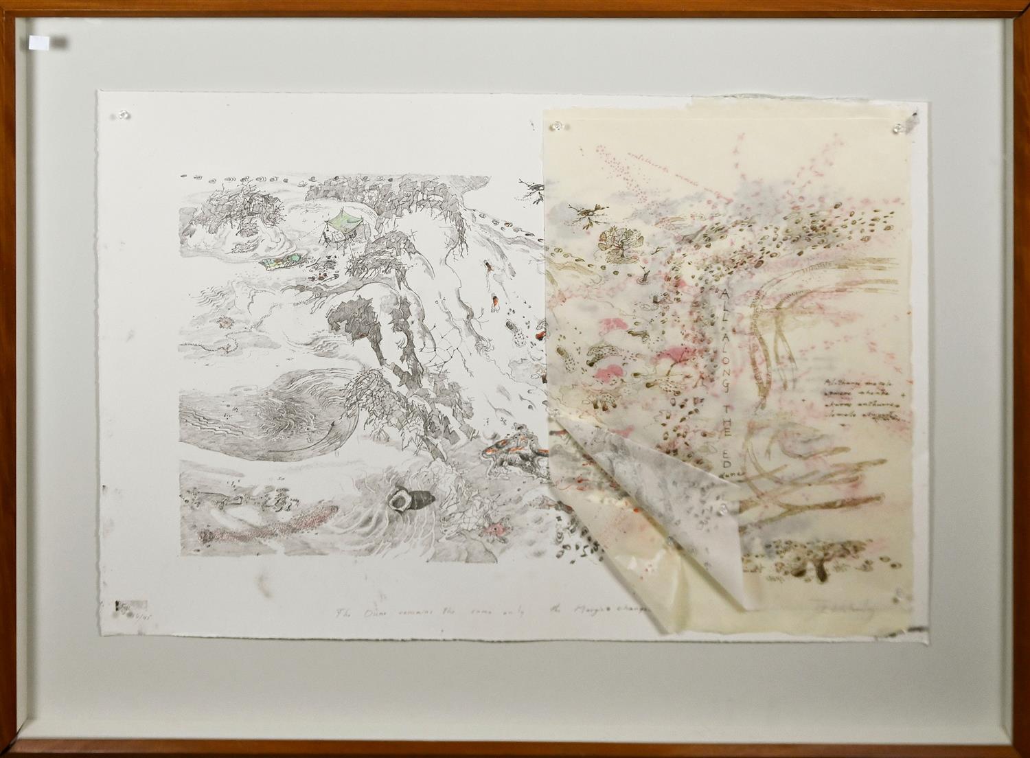 LITHOGRAPHWITH COLLAGE ED. 16/46, INSCRIBED UNDER IMAGE, 62 X 94CM (SHEET), FRAME SIZE: 88 X 118CM