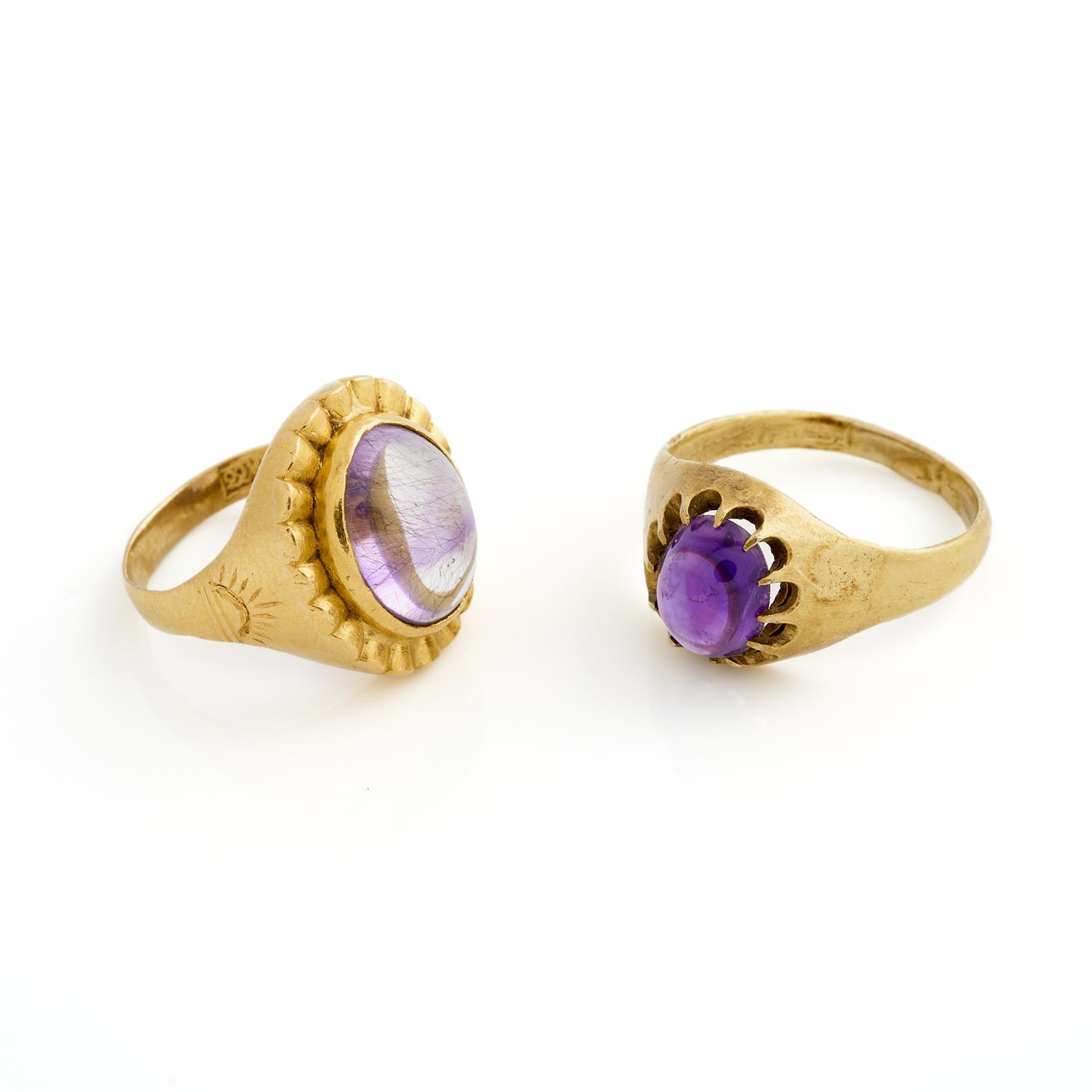 A GEM-SET RING IN 20CT GOLD, SIZE N, TOGETHER WITH A GEM-SET RING IN GILT, SIZE Q, 13.6GMS