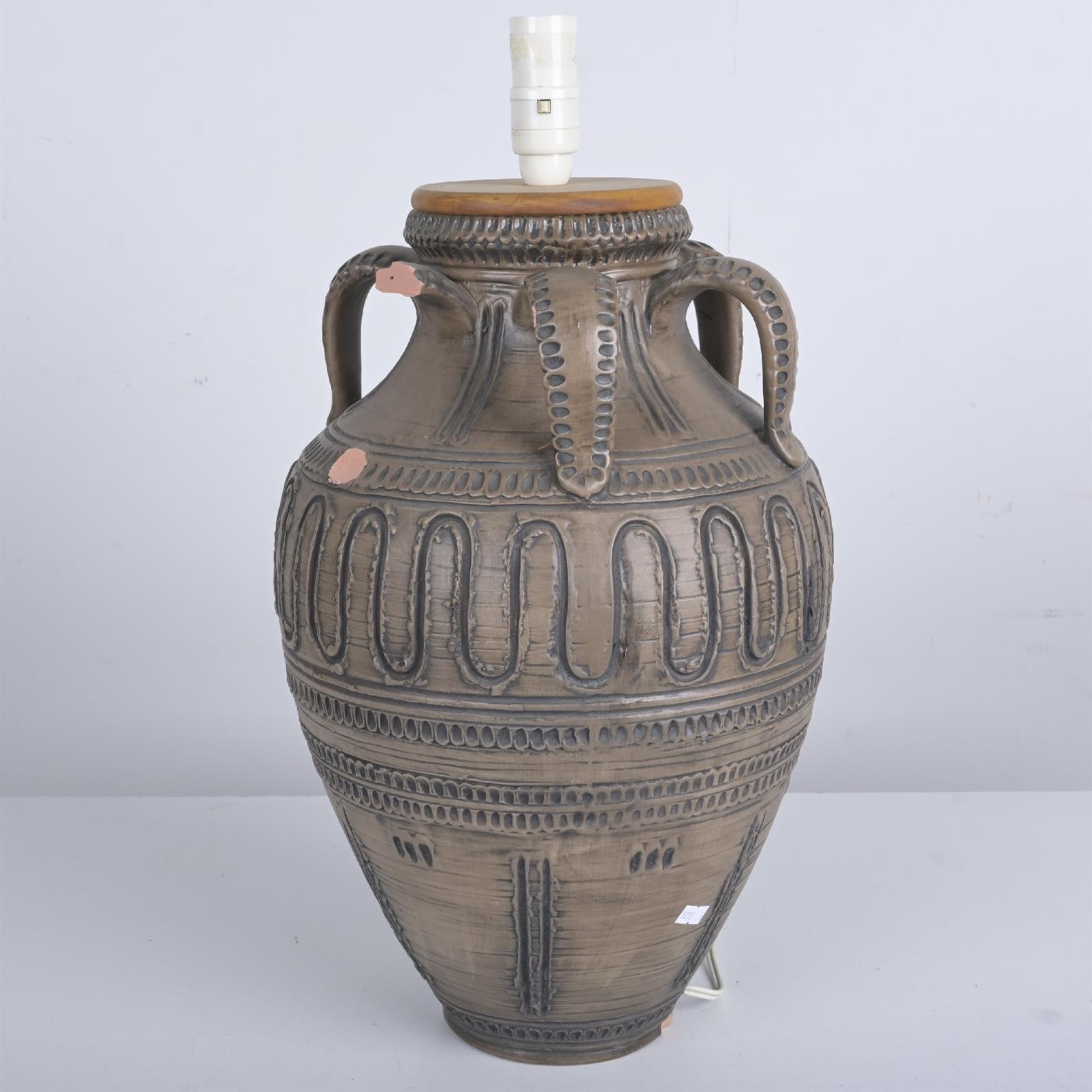 A TERRACOTTA TABLE LAMP, IN THE SHAPE OF AN URN (A/F) (62H X 32DIA CM)