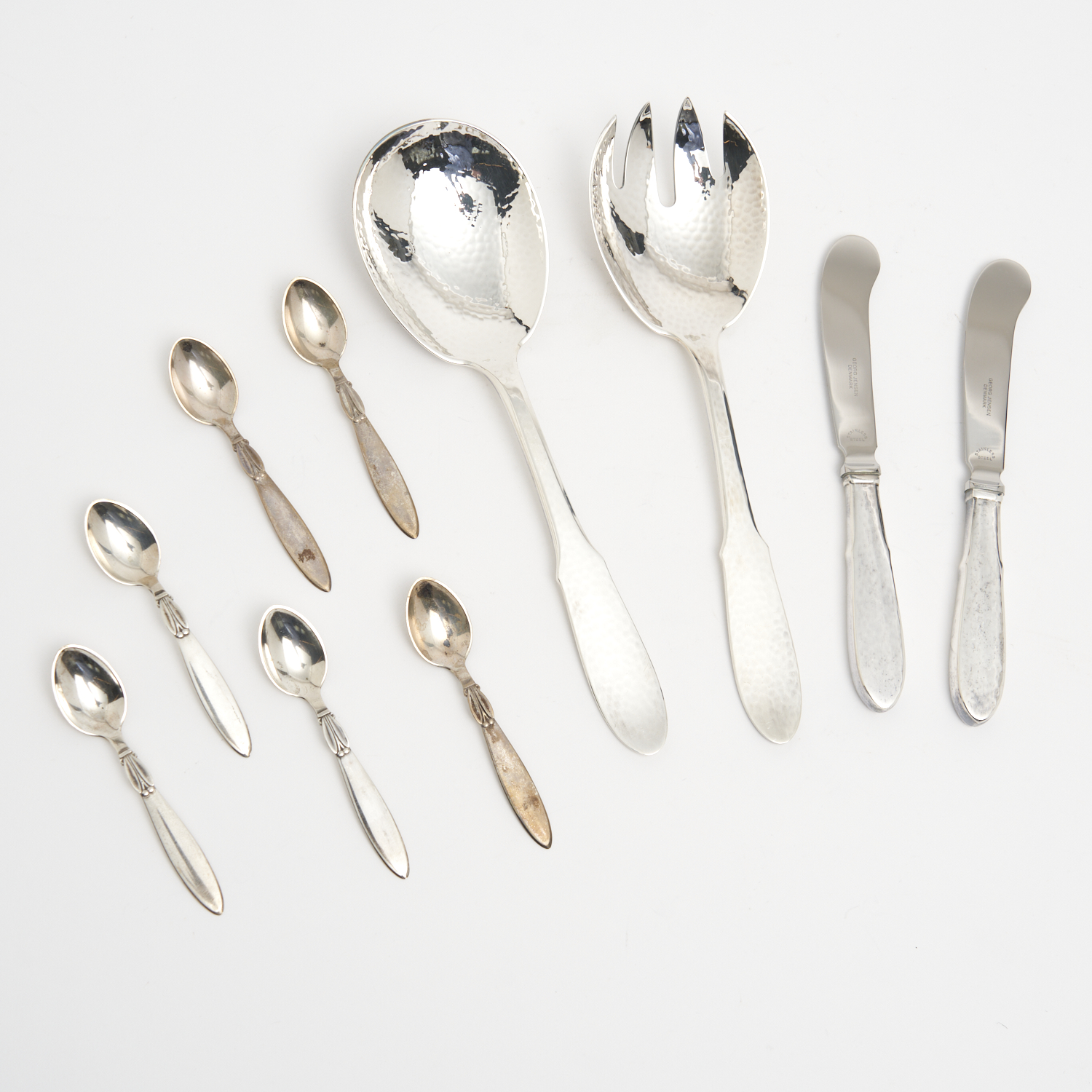 A SET OF SWEDISH SILVER COFFEE SPOONS, TOGETHER WITH A FOUR PIECES OF GEORG JENSEN FLATWARE 52G (TEASPOONS ONLY) L.21CM (LONGEST)