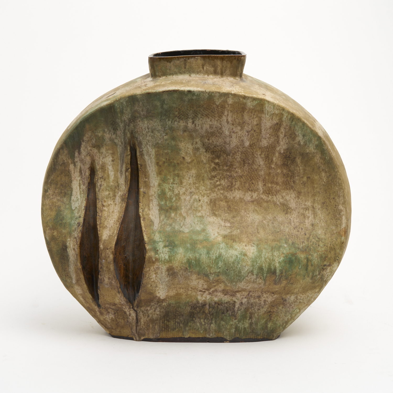 A LARGE MID-CENTURY GERMAN LAVA GLAZE VASE, STAMPED TO BASE, H.40.5CM