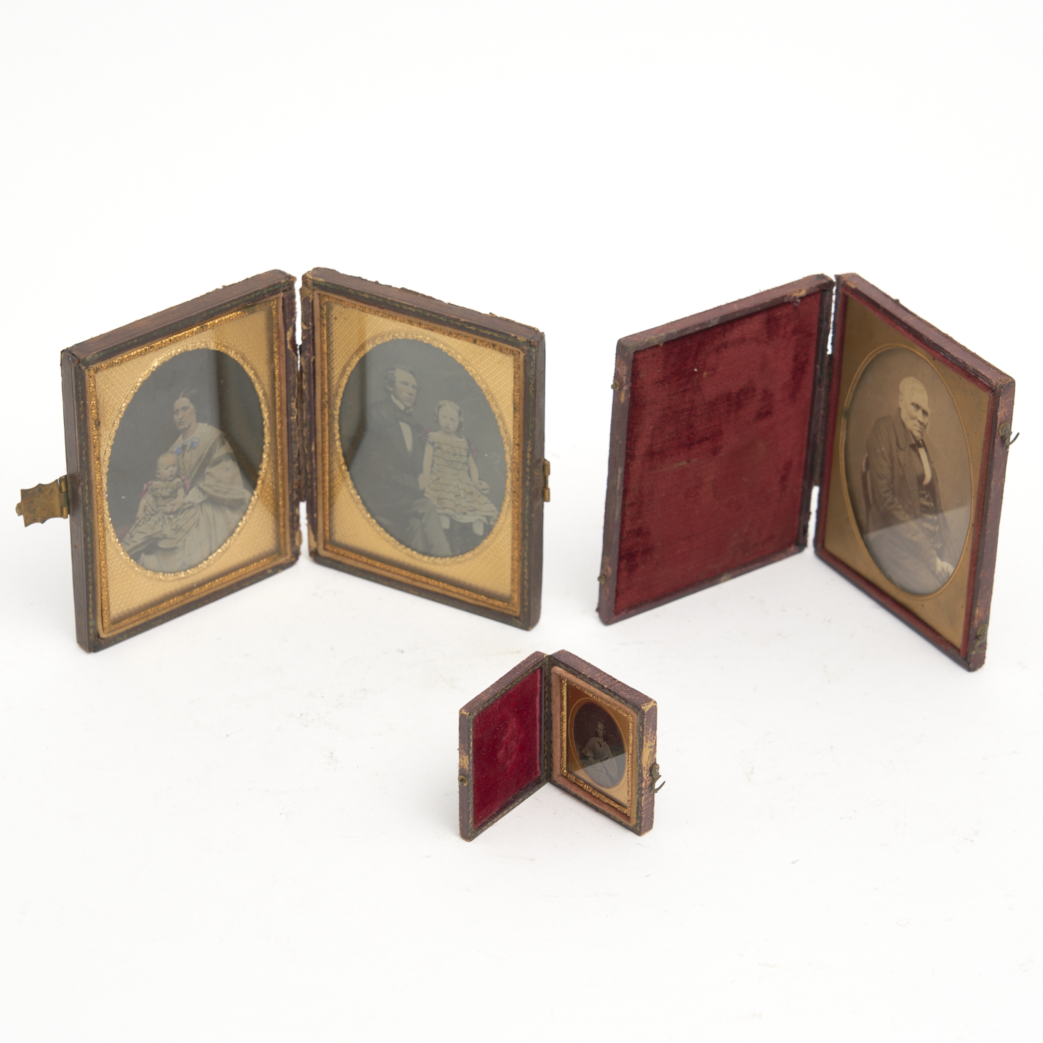 A GROUP OF THREE 19TH CENTRURY LEATHER CASED DEGEREOTYPES H.12.5CM (LARGEST)