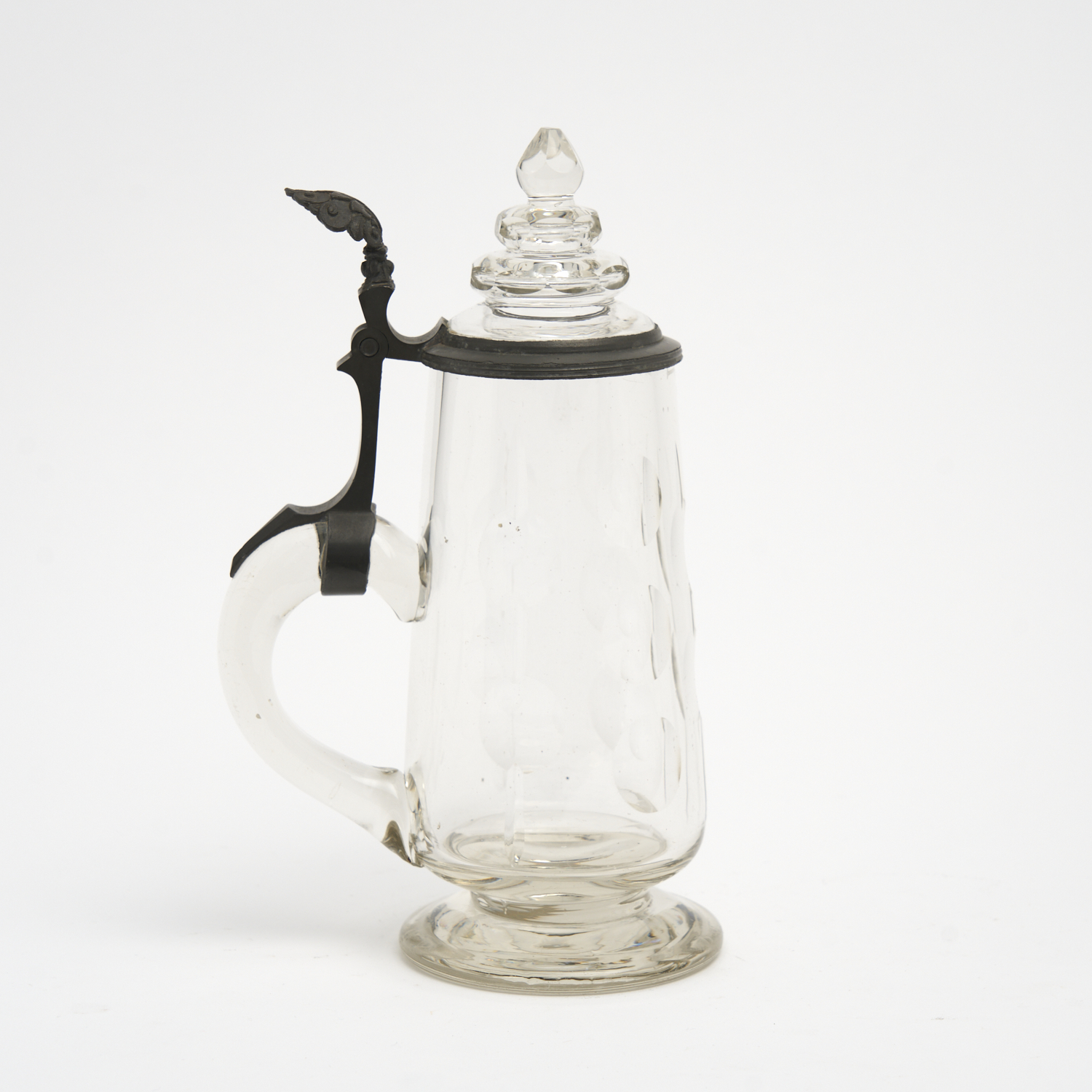 A 19TH CENTURY GERMAN FACETED CRYSTAL AND PEWTER MOUNTED BEER STEIN H.24CM