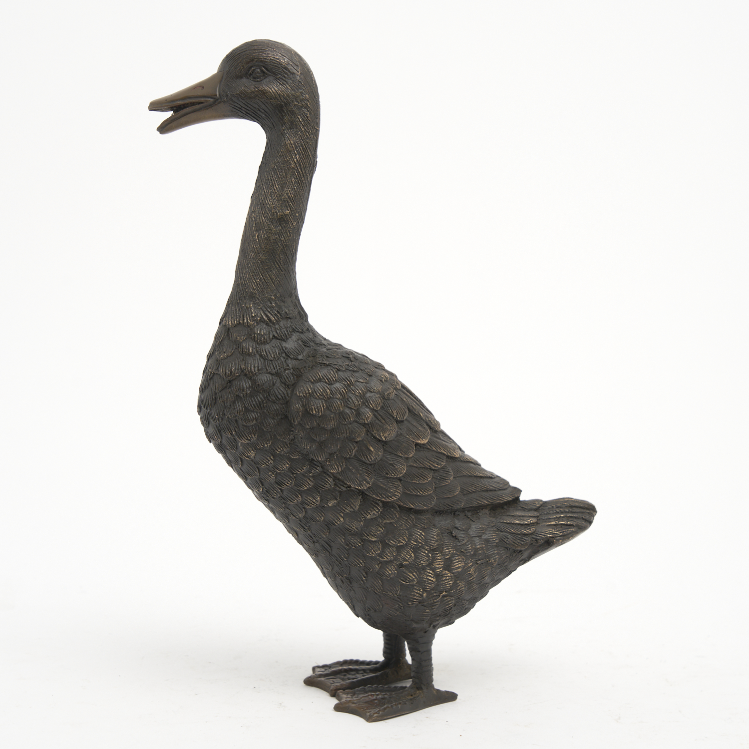 A SOLID BRONZE PATINATED GOOSE FIGURE, POSSIBLY BY STEPHEN WALKER TASMANIA H.29CM