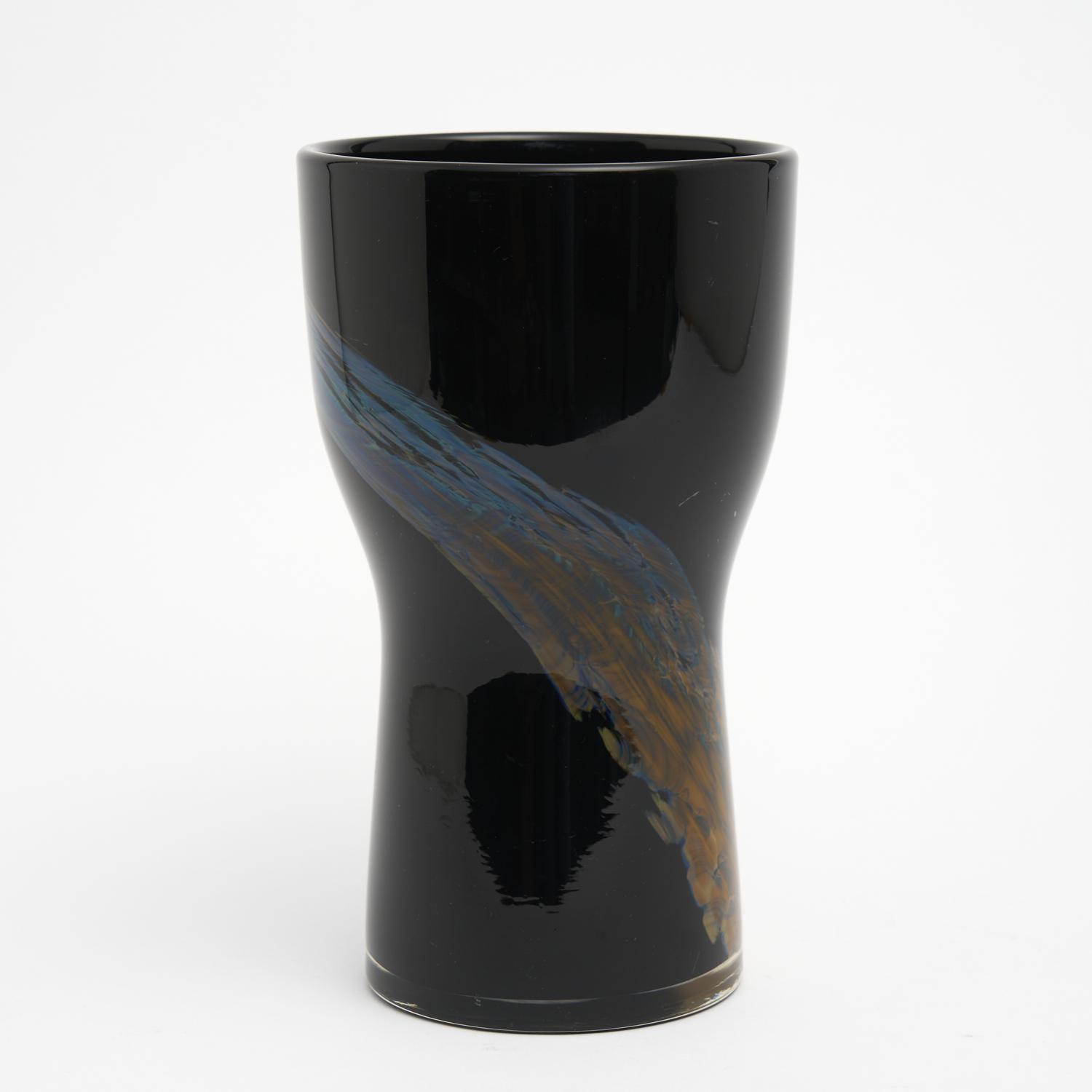 AN ART GLASS VASE WITH COMET TRAIL DECORATION H.24CM