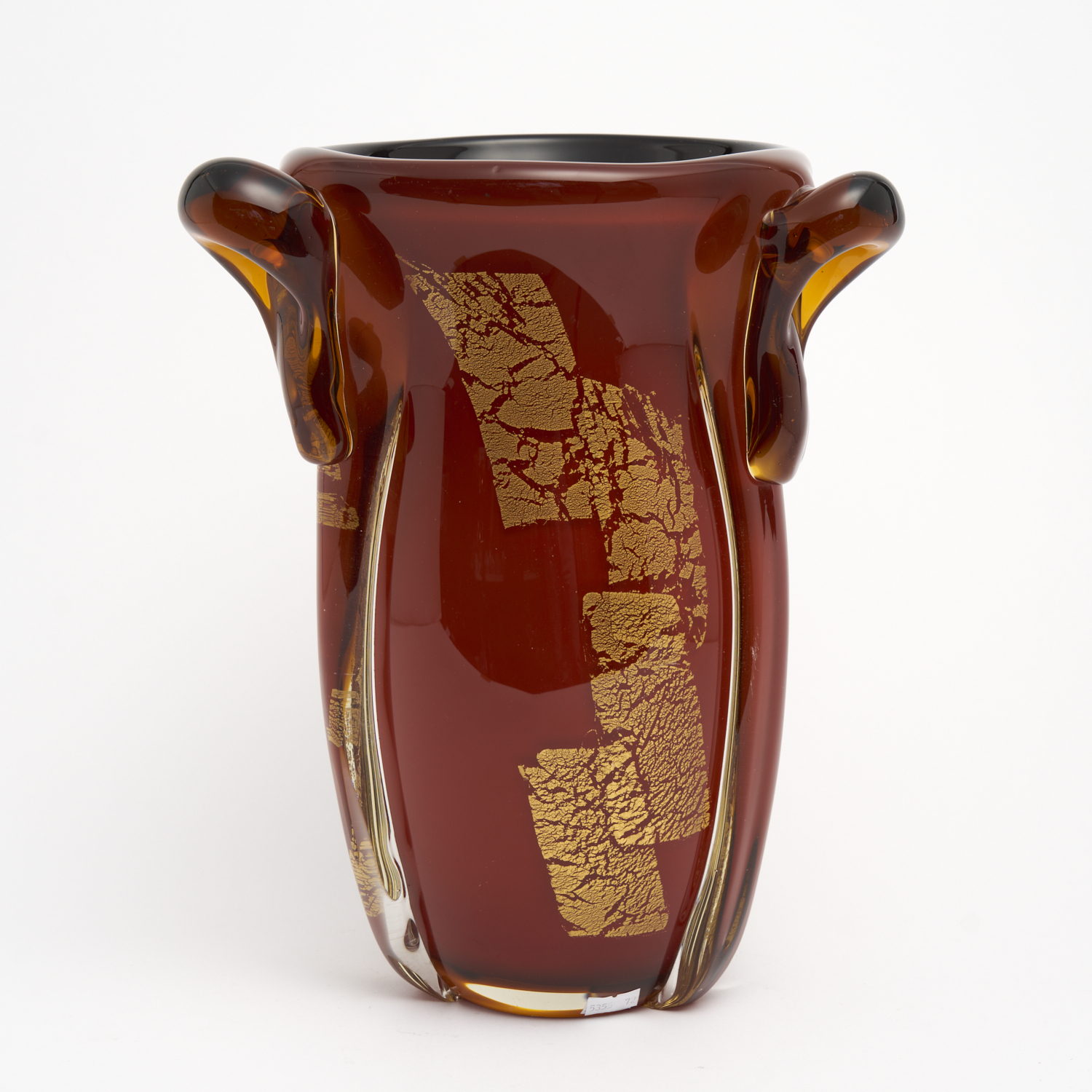 AN OVERSIZED VINTAGE ITALIAN GLASS VASE WITH GOLD FOIL INCLUSIONS H.33.5CM