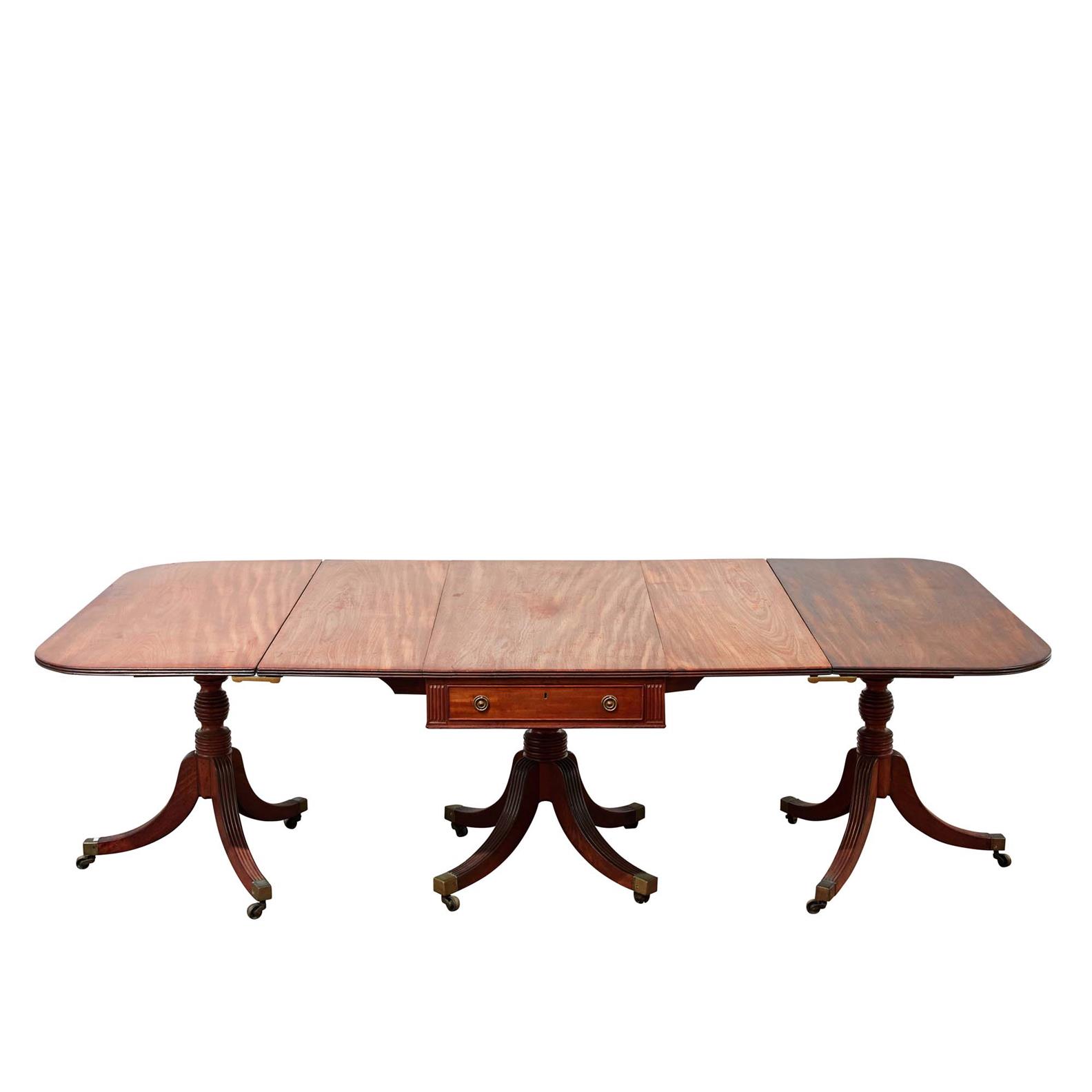 The central section with two drawers, on reeded turned pedestals with four swept leap, two extra leaves.