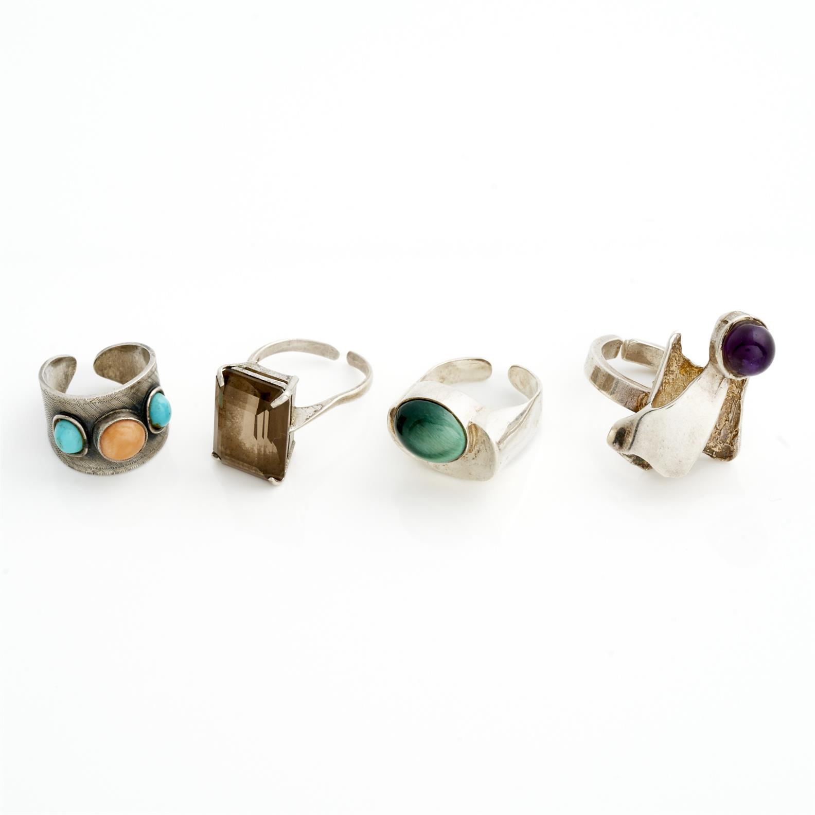 A COLLECTION OF GEM-SET RINGS IN SILVER, SIZES K-P