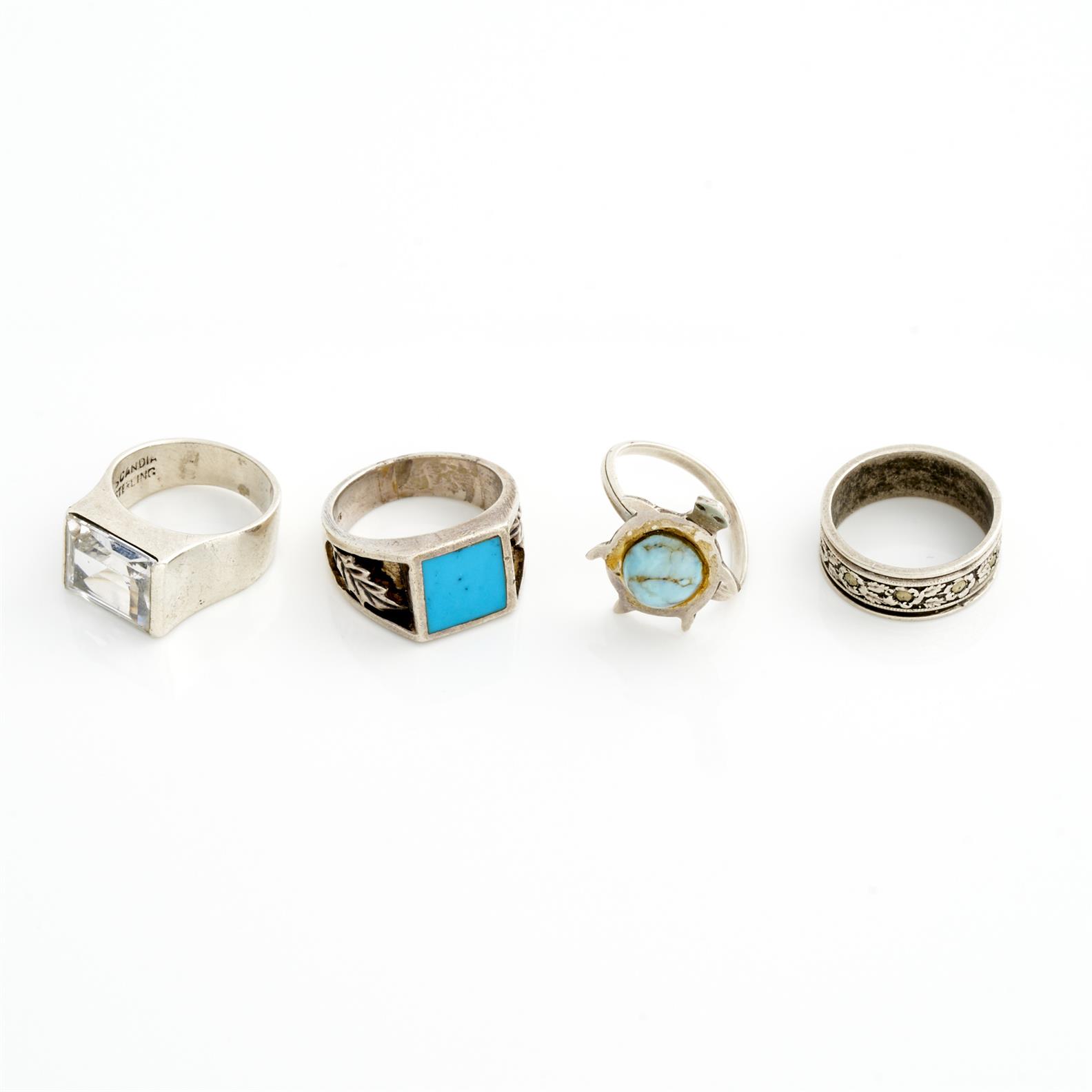 A COLLECTION OF RINGS IN SILVER, INCLUDING GEM-SET, SIZES J-O