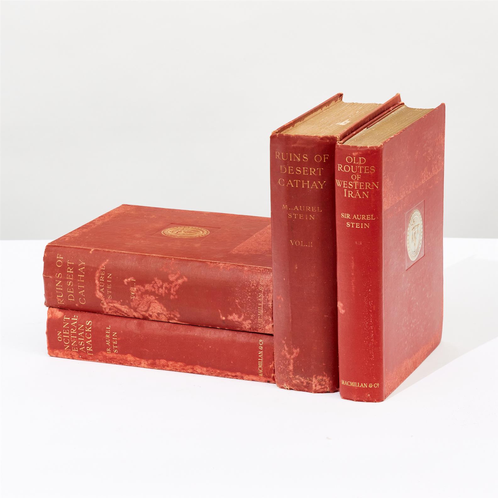 FOUR FIRST EDITION BOOKS BY SIR AUREL STEIN COMPRISING: OLD ROUTES OF WESTERN IRAN, ON ANCIENT CENTRAL ASIAN TRACKS, AND RUINS OF DESERT CATHAY VOL I & II