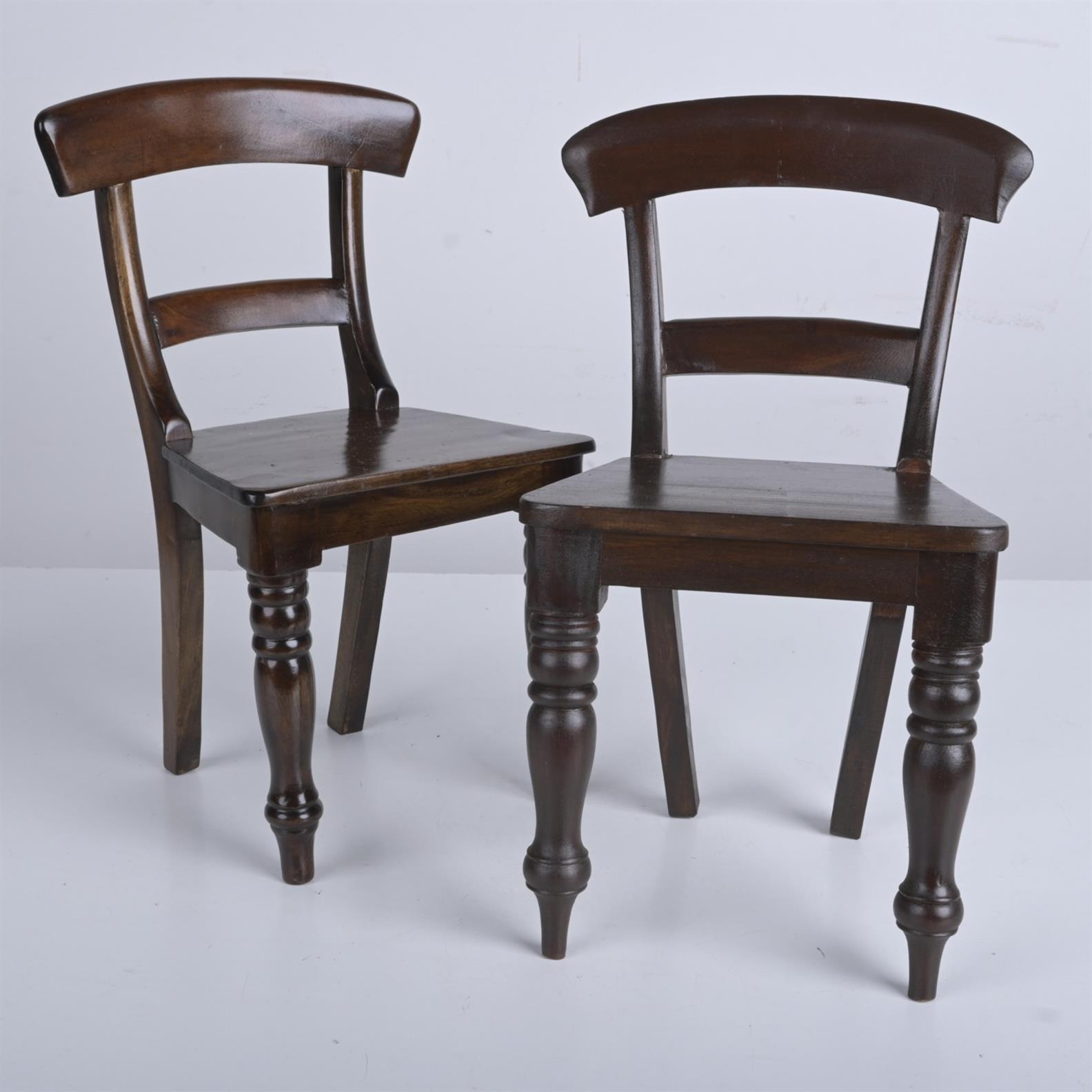 A PAIR OF MINIATURE MAHOGANY CHAIRS (43H X 24W X 20D CM)