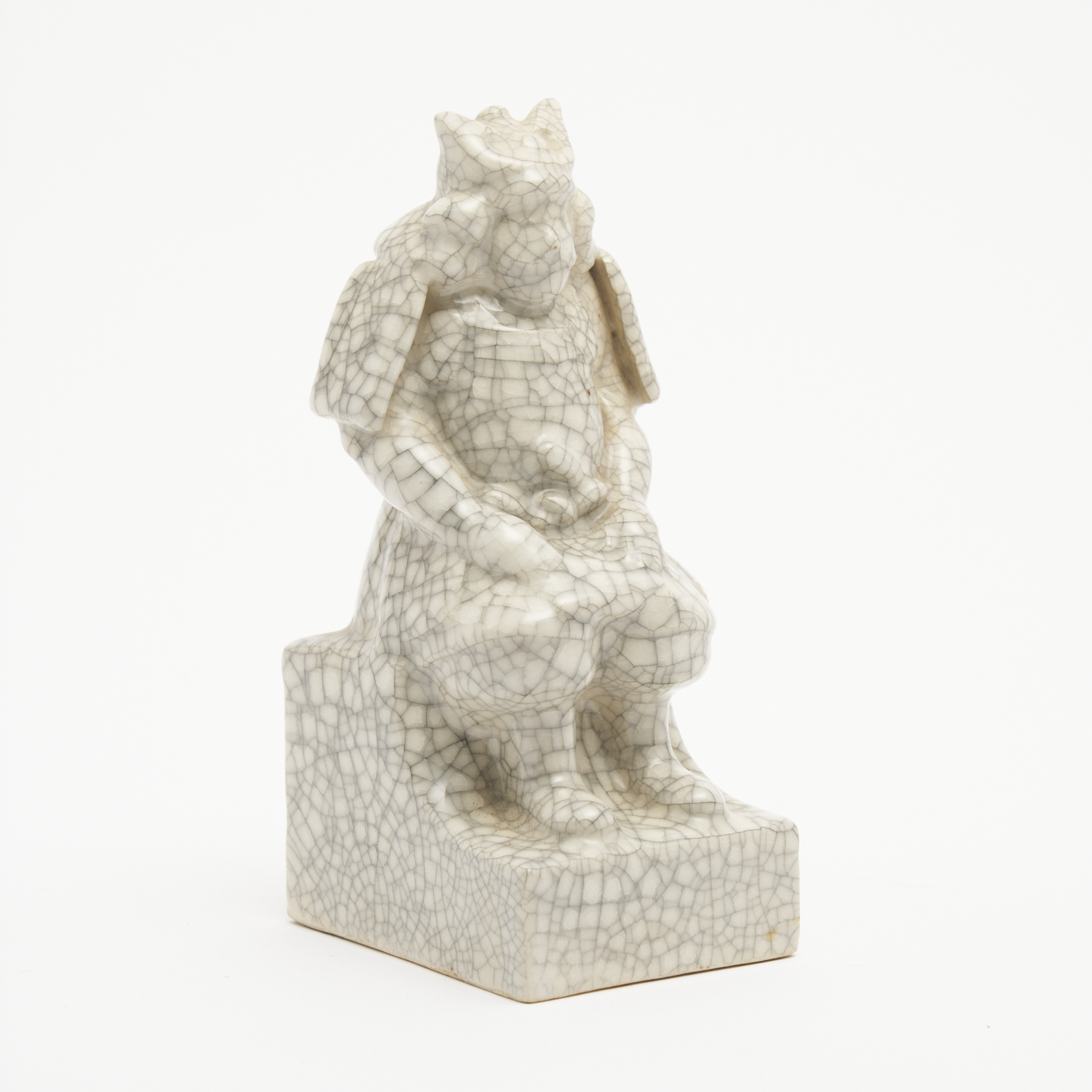 A CRACKLE GLAZE FIGURE OF A WARRIOR H.20CM