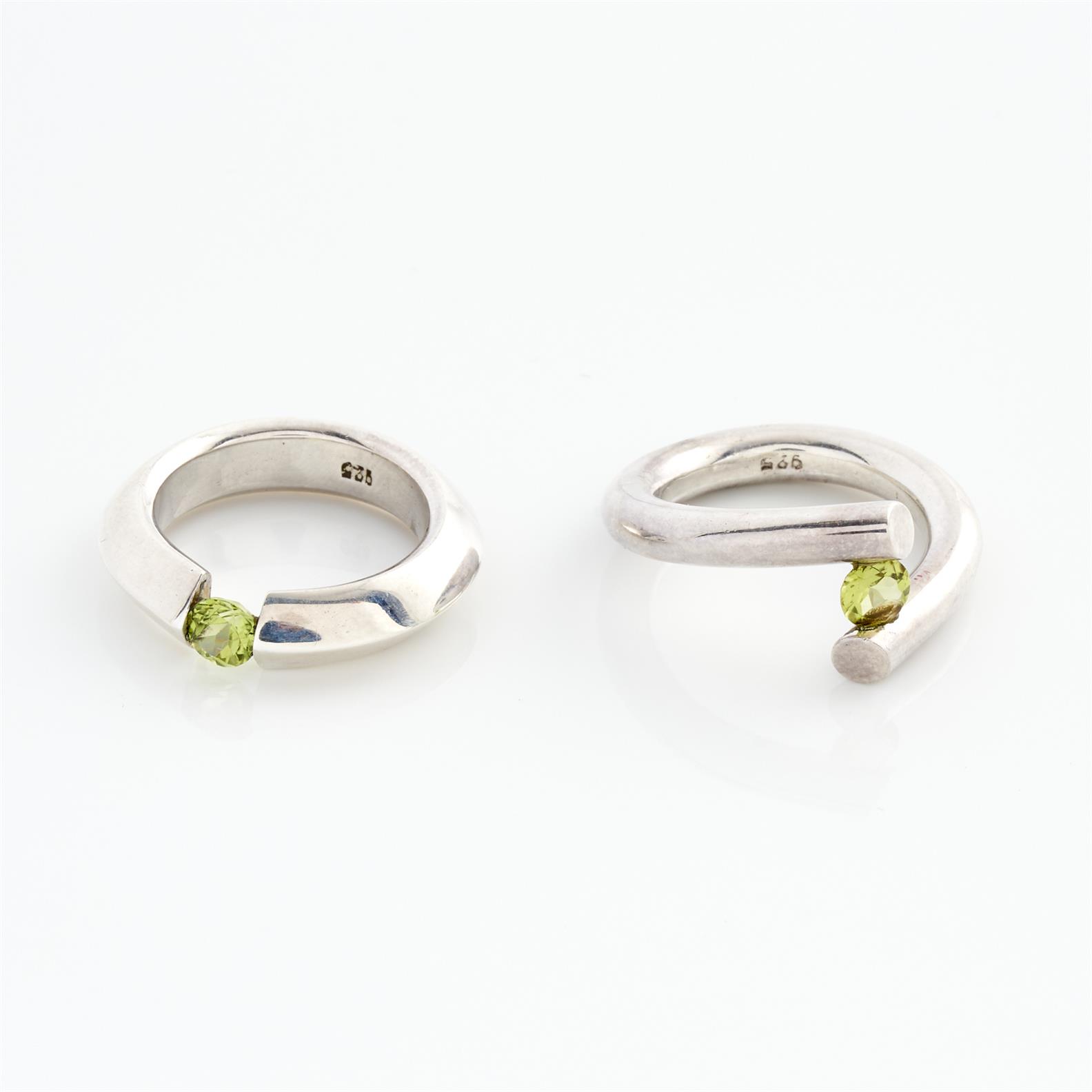 A PAIR OF MODERNIST GEM-SET RINGS IN STERLING SILVER, SIZE P