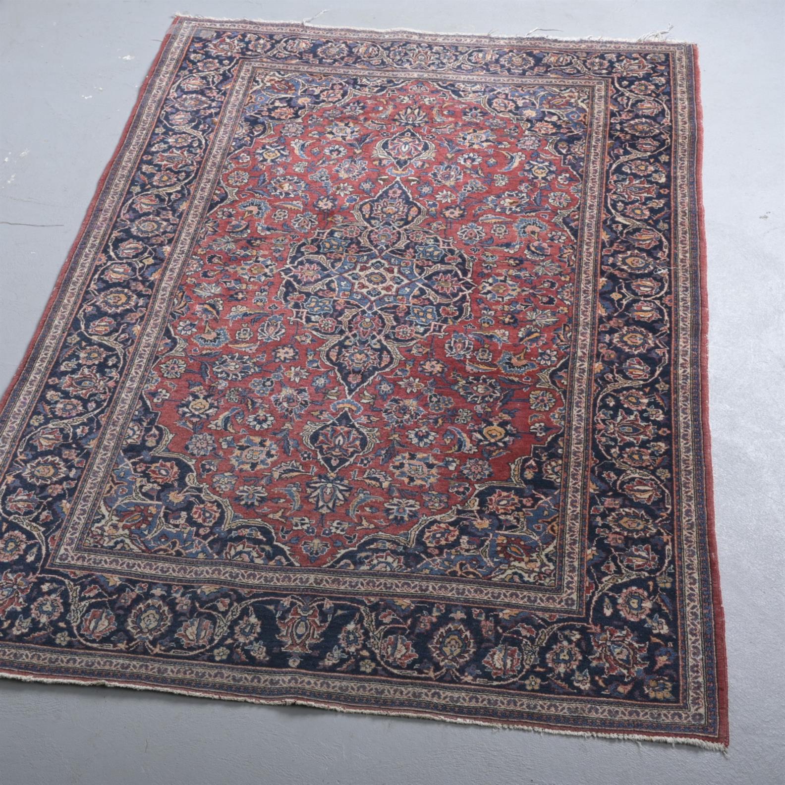A SUBSTANTIAL PERSIAN KASHAN LAMB’S WOOL RUG. HAND-KNOTTED KHORSHID KASHAN MASTER ATELIER WEAVE. KASHAN BOOK COVER DESIGN WITH A CIR...