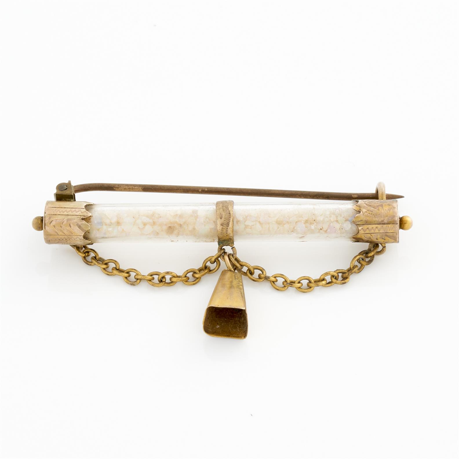 AN OPAL SPECIMEN BROOCH TO A FRAME IN LOW CARAT GOLD, 50MM