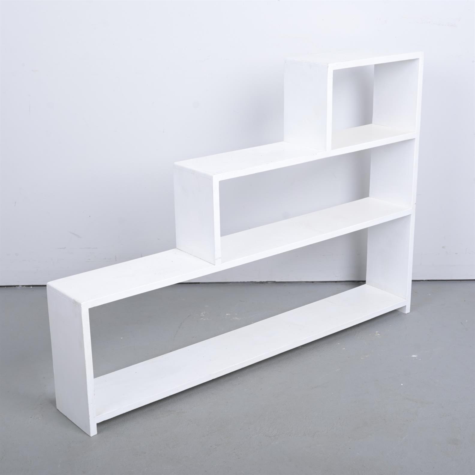 A WHITE PAINTED OPEN STEPPED BOOKCASE (A/F) (87H X 126W X 19D CM)