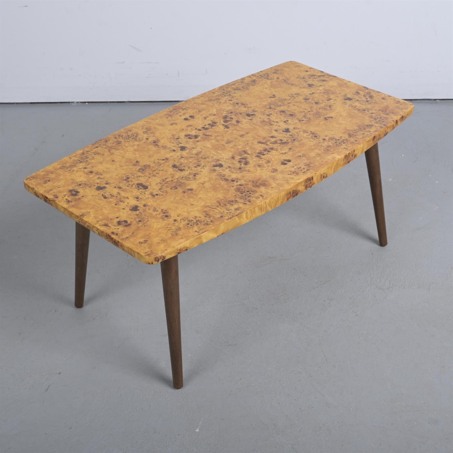 A BURL BIRCH COFFEE TABLE FOR GAINSBOROUGH FURNITURE (39H X 87W X 44D CM)