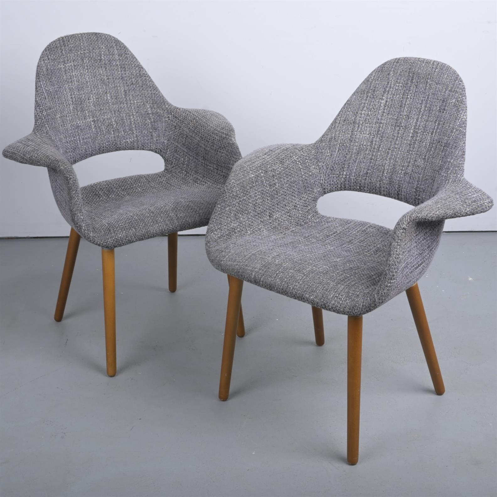 A PAIR OF CONTEMPORARY UPHOLSTERED ARMCHAIRS (H89 W73 D76 CM)