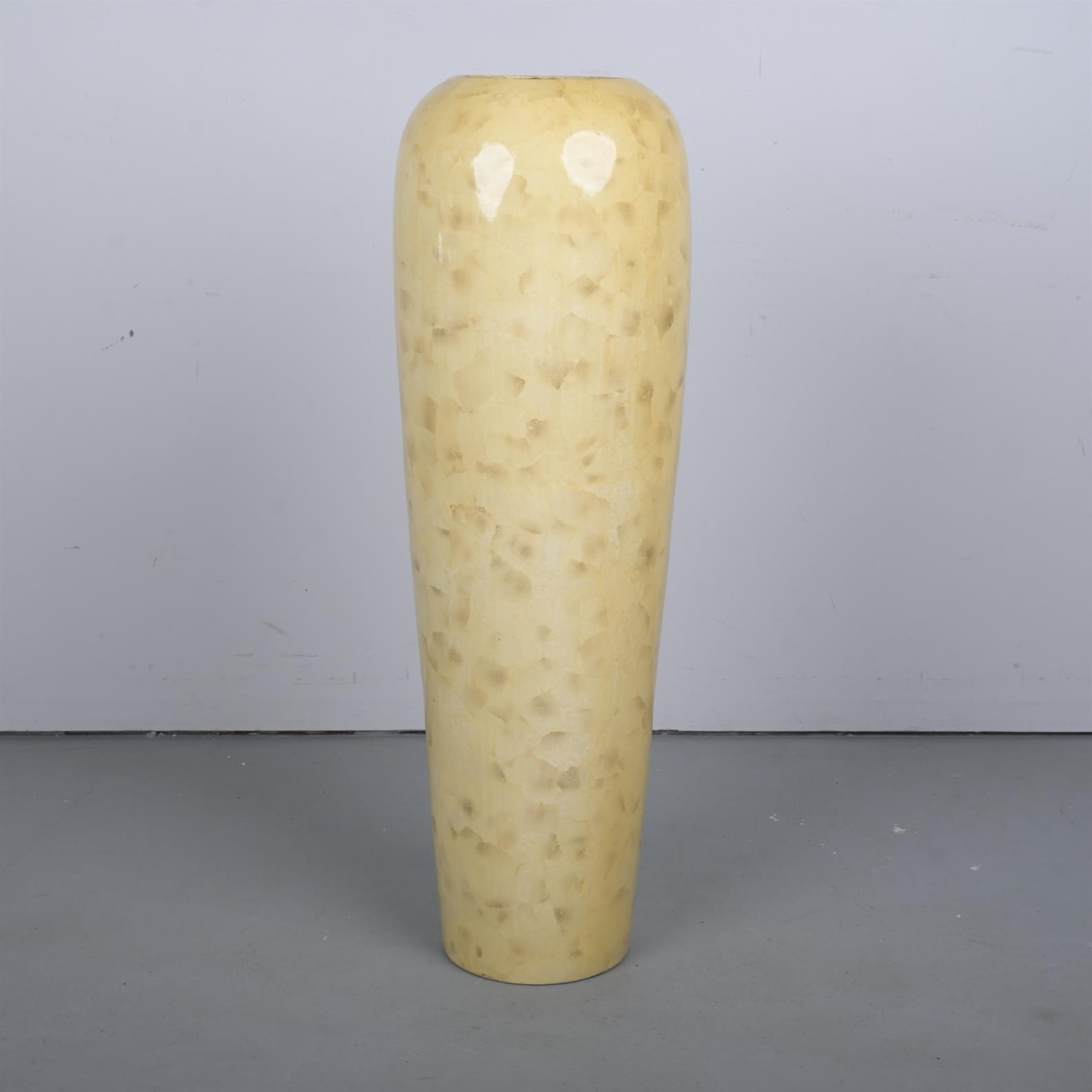 A CONTEMPORARY CERAMIC FLOOR VASE, IN A DECORATIVE YELLOW GLAZE (118H X 40DIA CM)