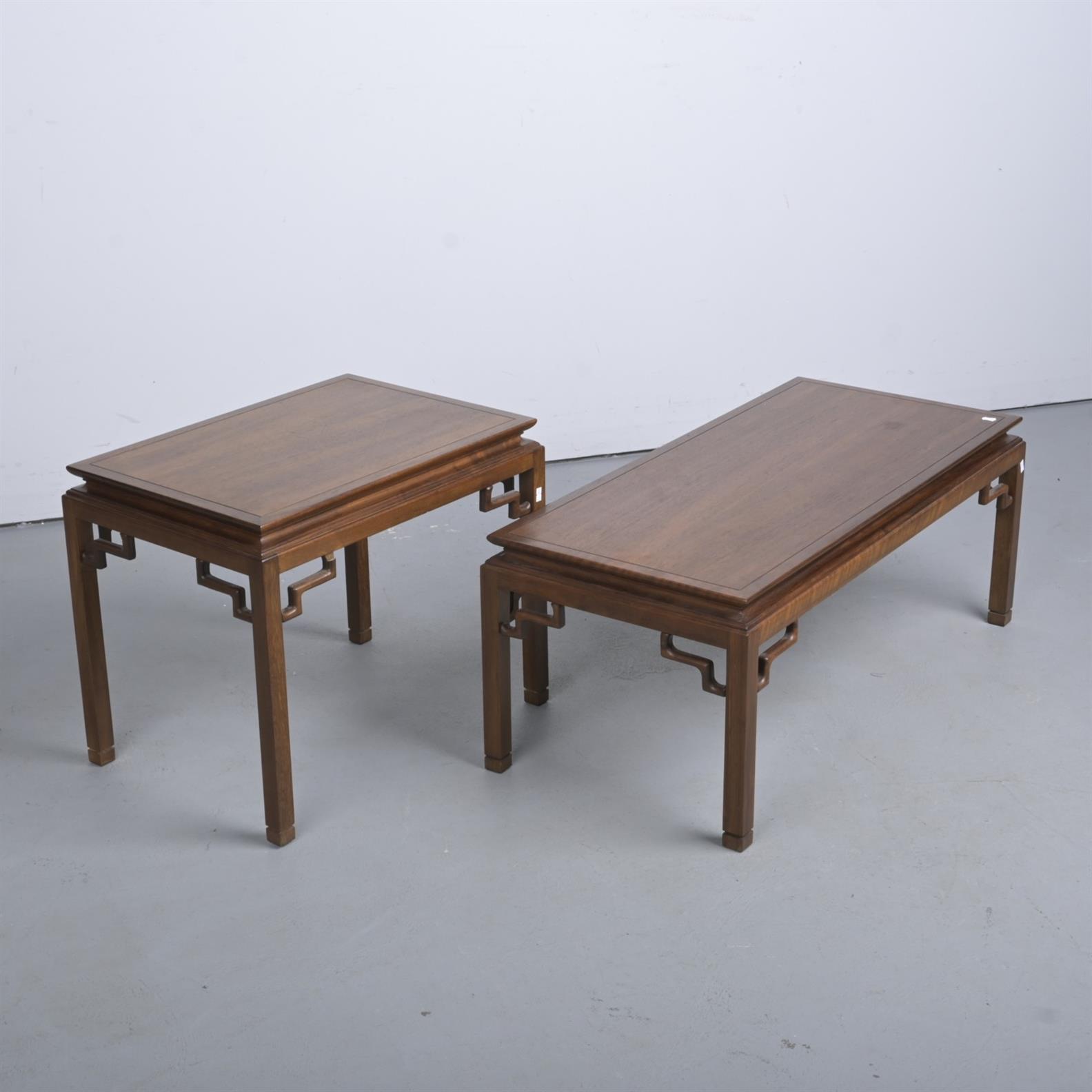 TWO CHINESE HARDWOOD COFFEE TABLES (H49 W59 D41 CM)