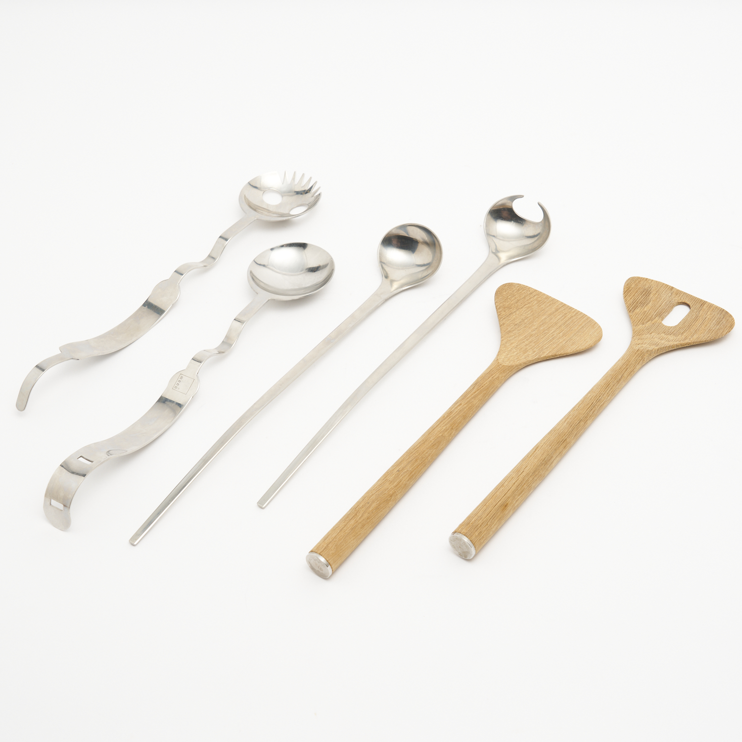 A TRIO OF DANISH SERVER SETS, INCLUDING MAGNUS STEPHENSEN AND ALFREDO HABERLI FOR GEORG JENSEN AND MENU L.32CM (LONGEST)