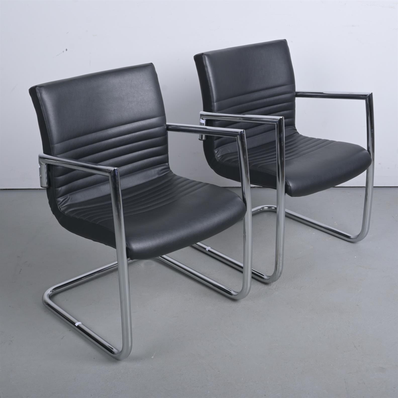 A PAIR OF CHROME AND LEATHER CANTILEVER CHAIRS (86H X 56W X 57D CM)