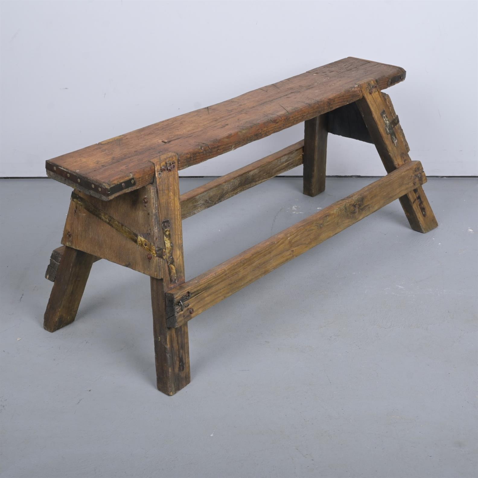A LATE 19th CENTURY AUSTRALIAN PINE STRETCHER BASE SEAT (A/F) (52H X 125W X 51D CM)