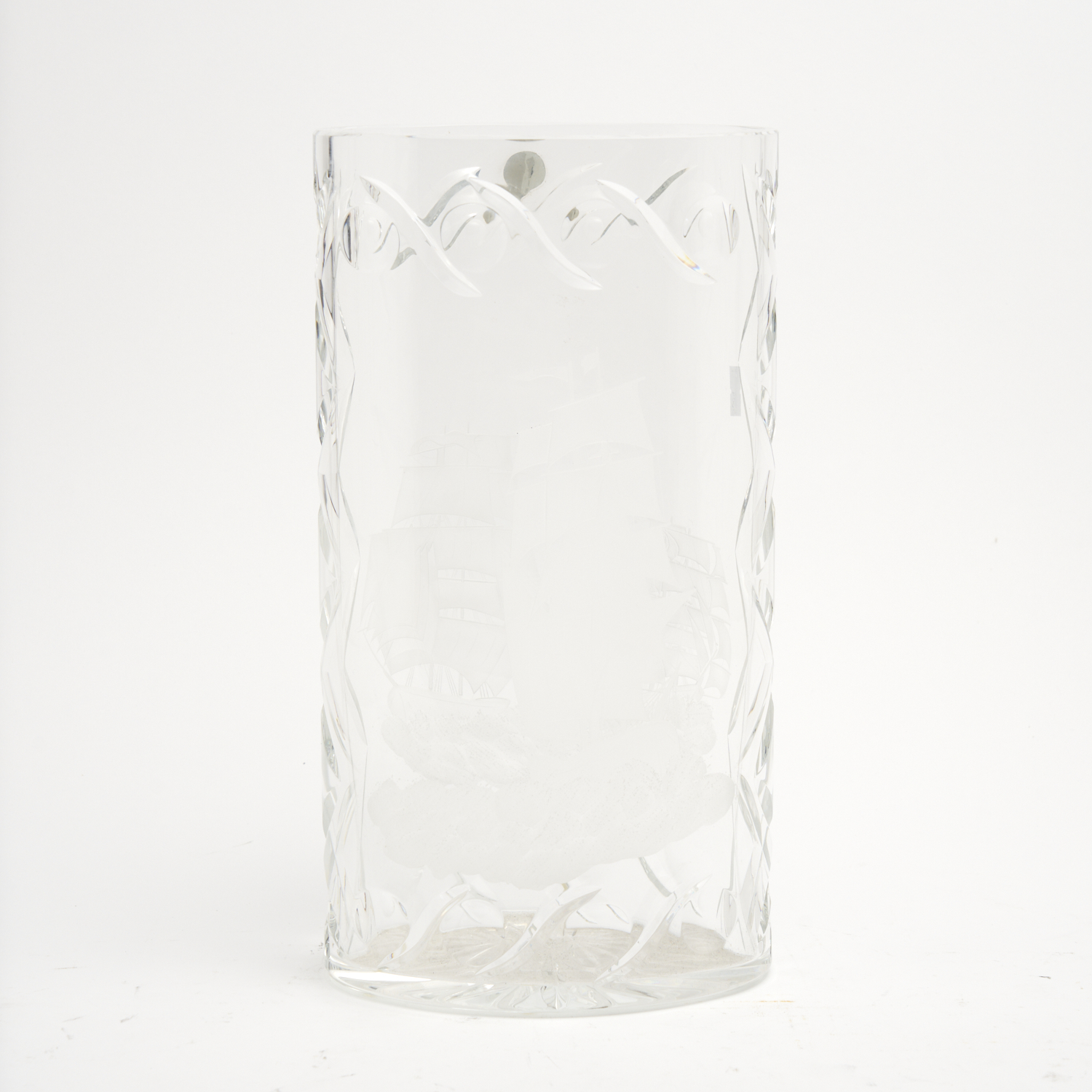 A WATERFORD CRYSTAL VASE BY JIM O'LEARY COMMEMORATING THE 1988 AUSTRALIAN BICENTENNIAL, EDITIONED 17/50 H.36CM