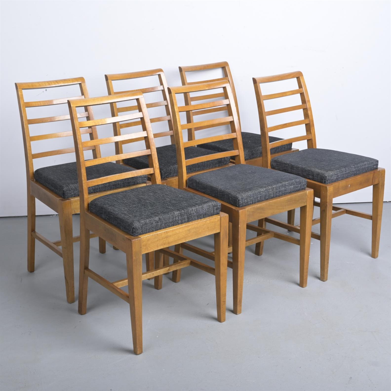 A SET OF SIX TEAK LADDER BACK DINING CHAIRS (87H X 45W X 46D CM)