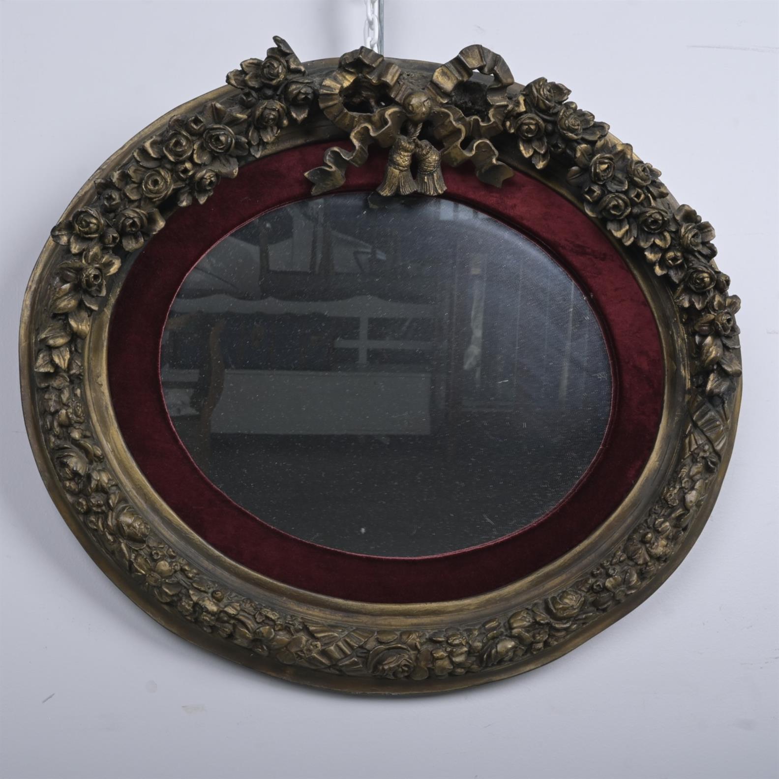 AN OLD GILT FRAMED WALL MIRROR WITH RED VELVET BORDER (A/F) (59H 71W CM)