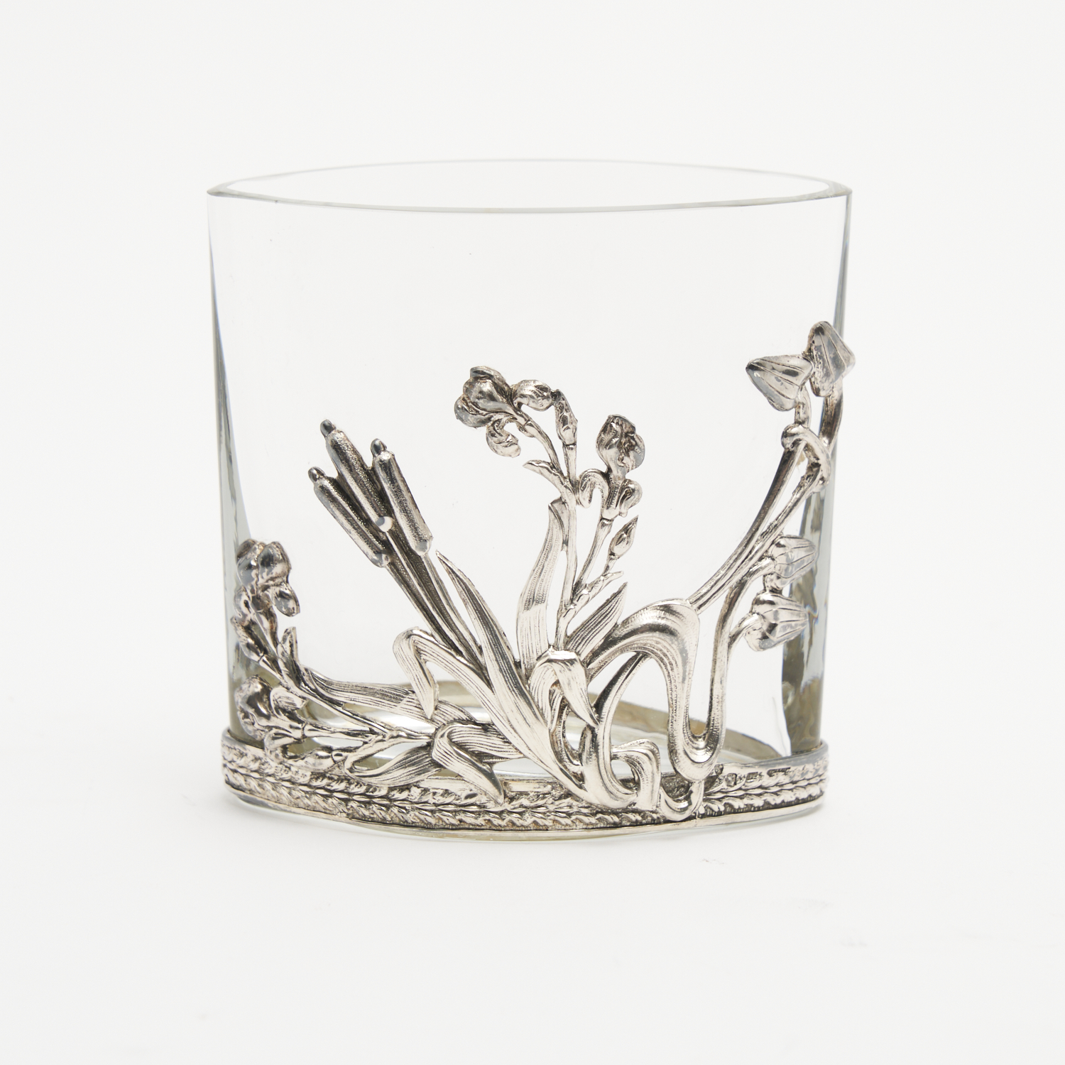 A STERLING SILVER 925 OVAL CRYSTAL VASE WITH FLORAL CASING H.9.5CM
