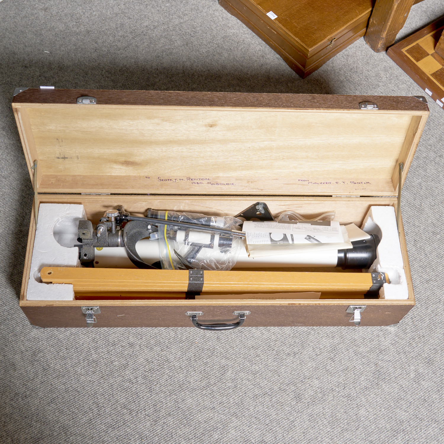 A CASED 60 MM AMASCO ALTAZIMUTH MOUNT ASTRONOMICAL REFRACTOR TELESCOPE WITH ATTACHMENTS AND INSTRUCTIONS L.77CM (CASE)