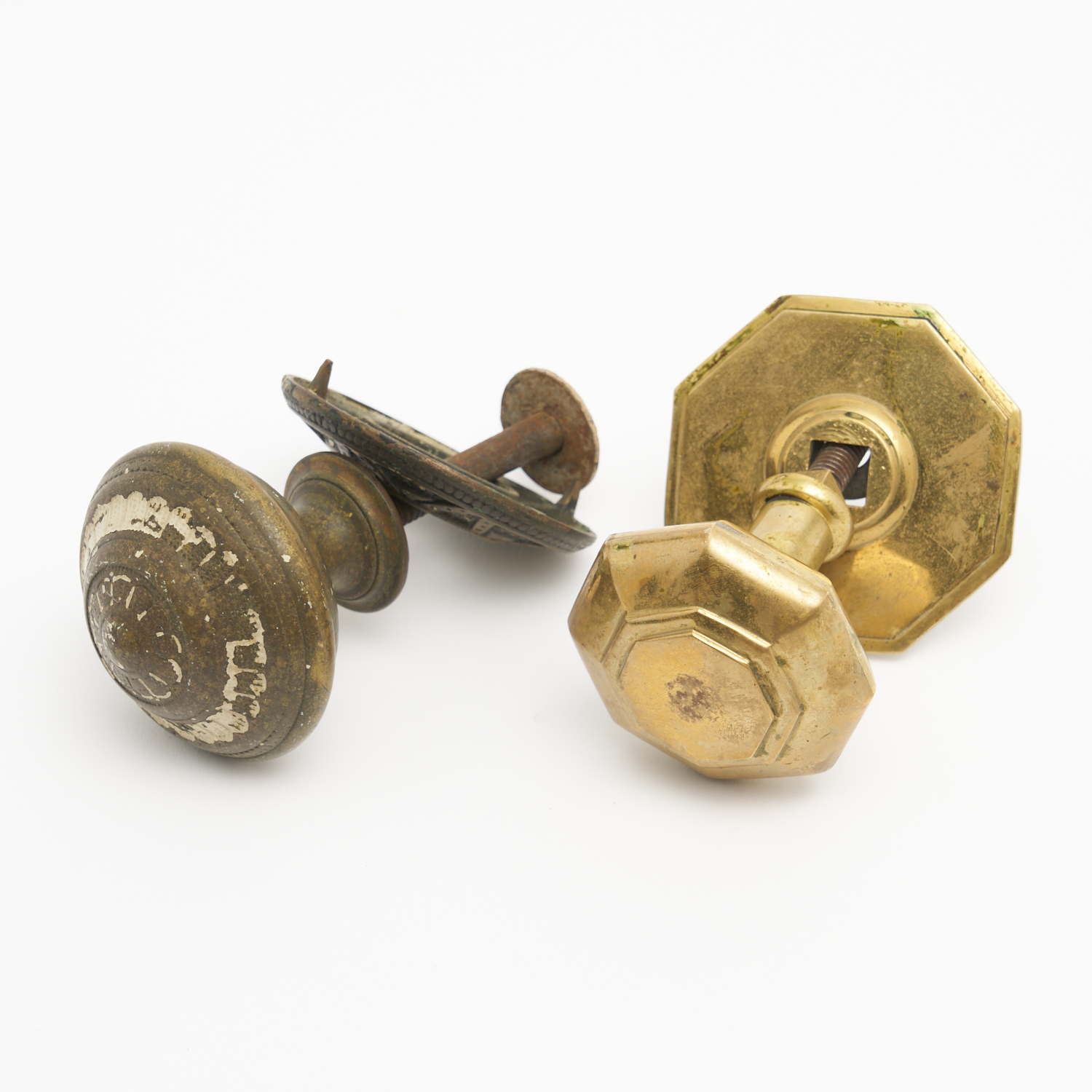TWO 19TH CENTURY ENGLISH BRONZE DOOR HANDLES DIA.7.5CM (LARGEST)