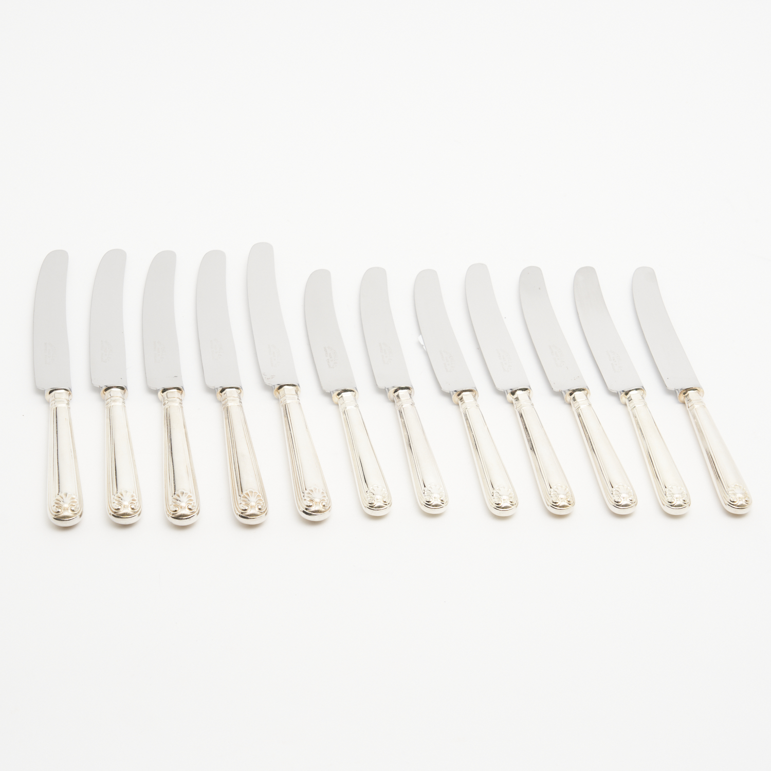 12 WHITEHILL SILVERPLATED SHELL PATTERN KNIVES, COMPRISING 5 DINNER AND 7 ENTREE KNIVES L.21.5CM (LONGEST)