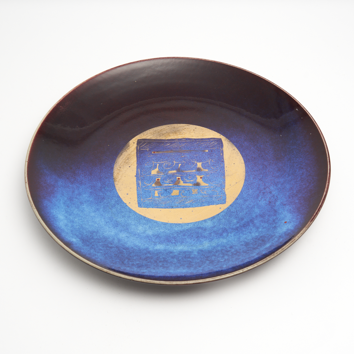 A CERAMIC PLATTER BY GREG DALY, 1997 (A/F) DIA.42CM