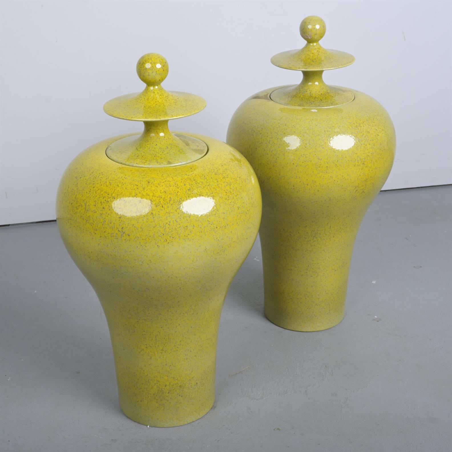 A PAIR OF TEMPLE CERAMIC VASES (75H X 40DIA CM)
