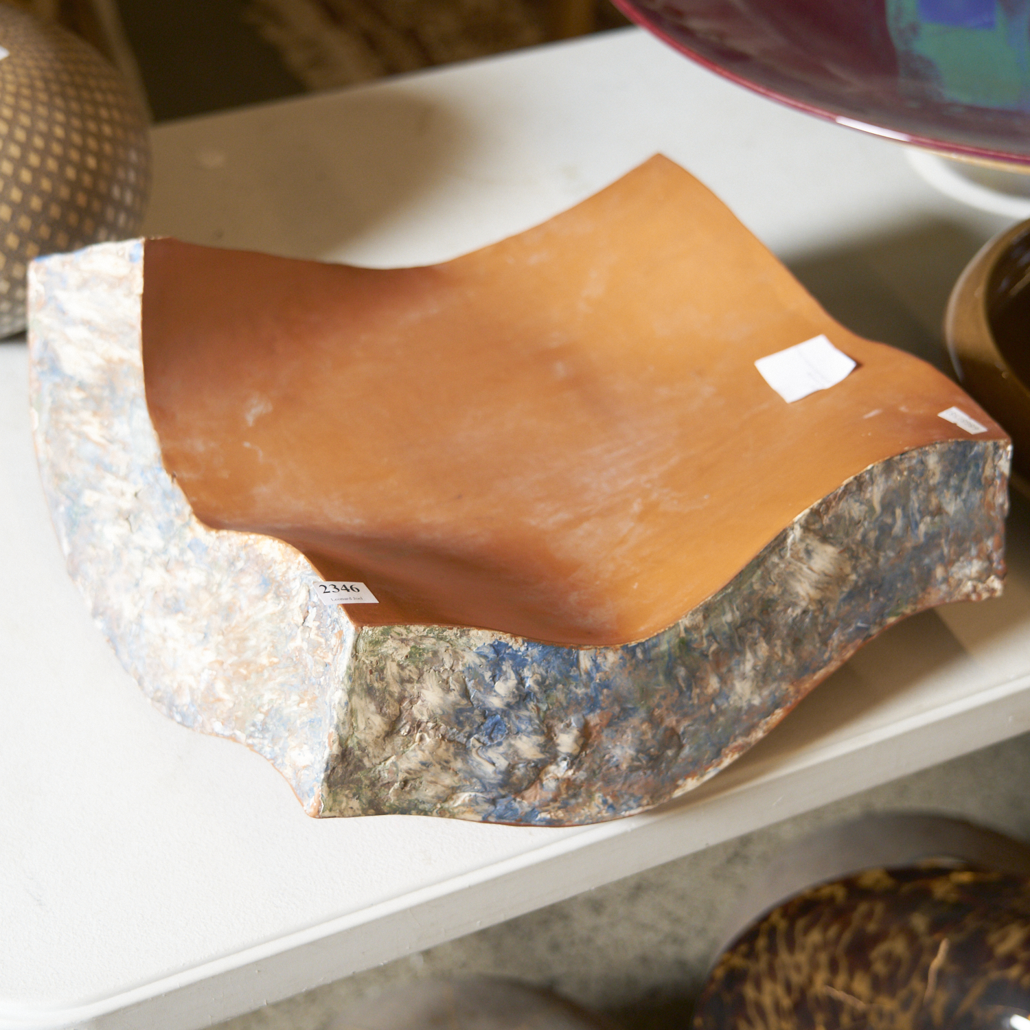 A GLAZED CERAMIC SCULPTURE OF A WAVY SQUARE ABSTRACT FORM W.36CM