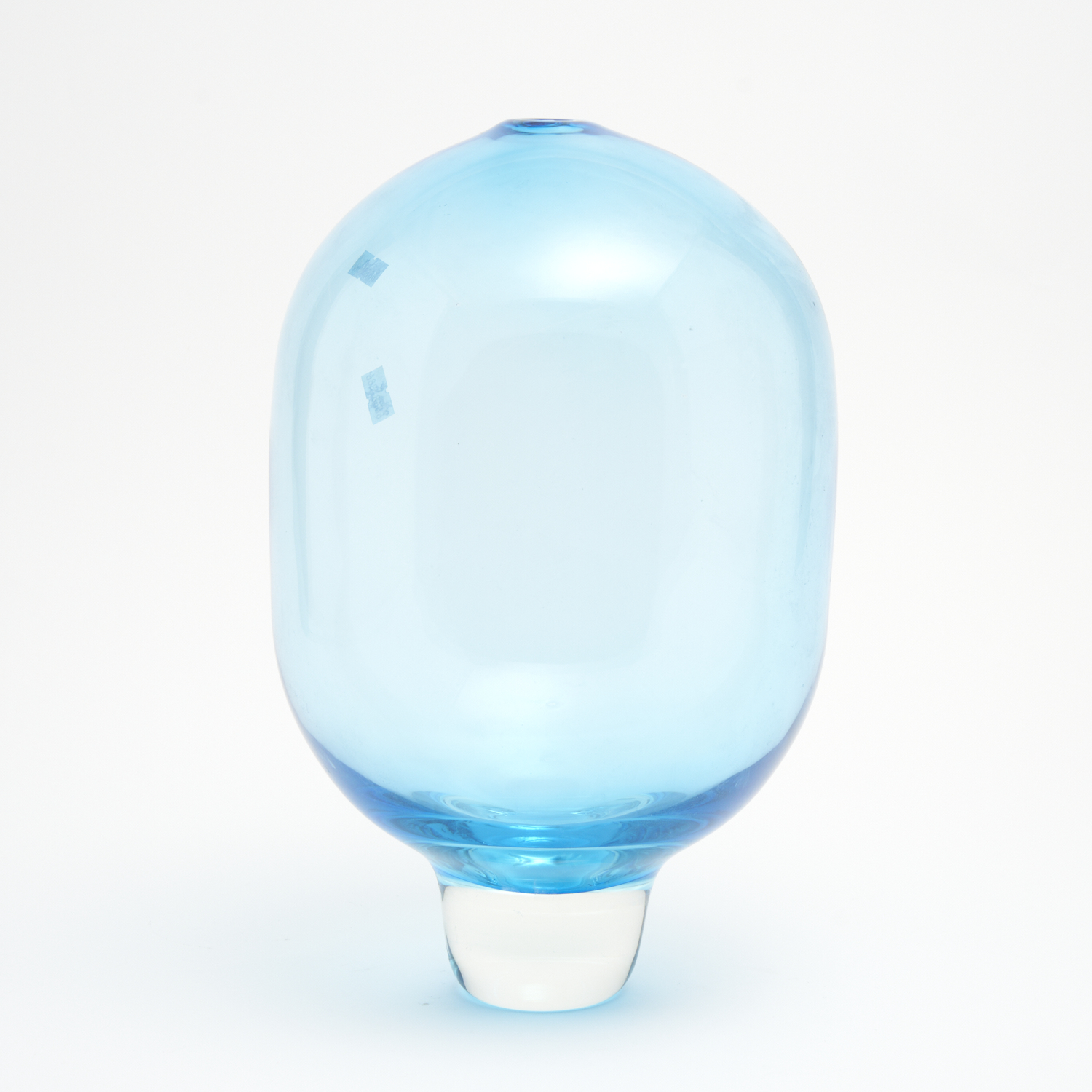 A BLUE BULBOUS GLASS SCULPTURE BY PHILIP STOKES, SIGNED TO BASE H.32CM