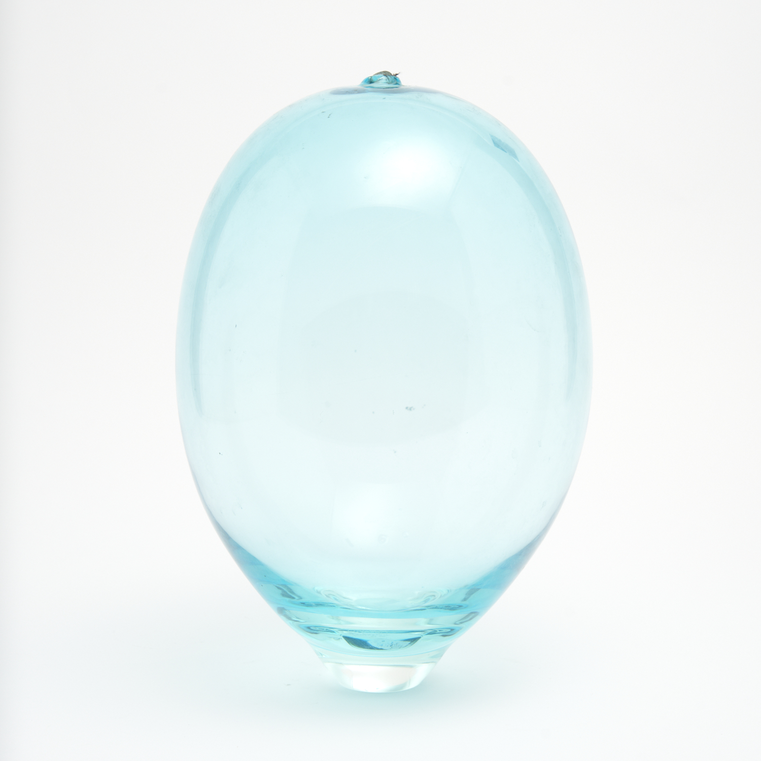 A BLUE BULBOUS GLASS SCULPTURE BY PHILIP STOKES, SIGNED TO BASE H.35CM