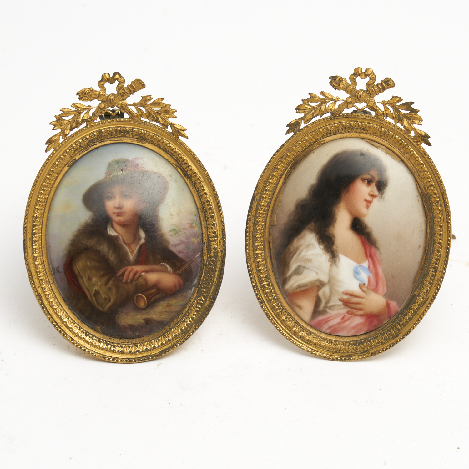 A PAIR OF OVAL PORTRAITS IN ORNATE FRAMES H.12.5