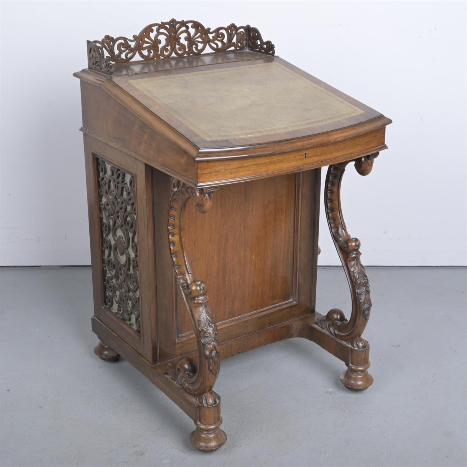 A VICTORIAN ROSEWOOD DAVENPORT WITH INLAY, ON CASTERS (A/F) (93H X 55W X 60D CM)