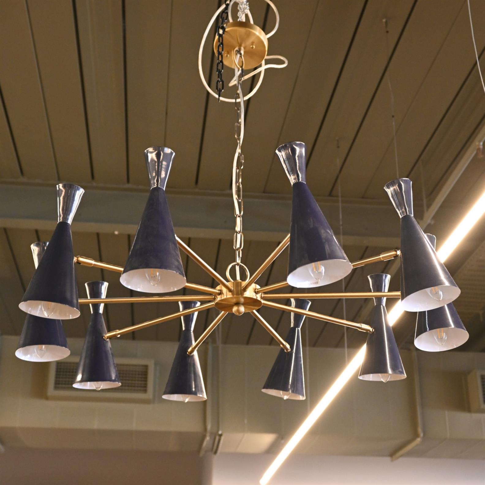 A TEN BRANCH CHANDELIER IN THE STYLE OF STILNOVO. (DIAMETER 90CM DROP 70CM)
