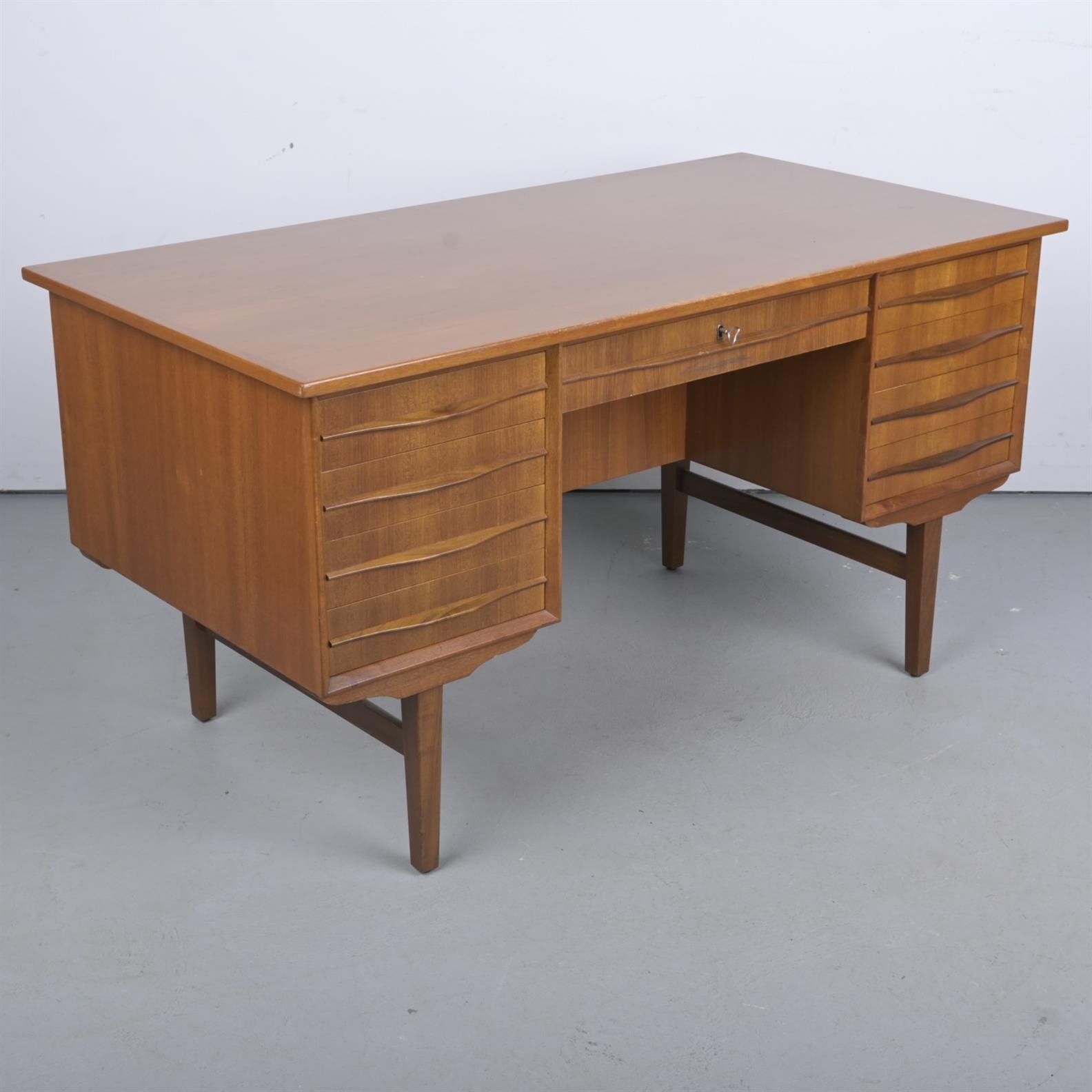 A 1960s DANISH TEAK DESK (A/F) (76H X 143W X 74D CM) (THIS ITEM MUST BE REMOVED BY CARRIERS AT THE CUSTOMER'S EXPENSE. LEONARD JOEL STAFF CANNOT ASSIST CARRYING THIS ITEM.)