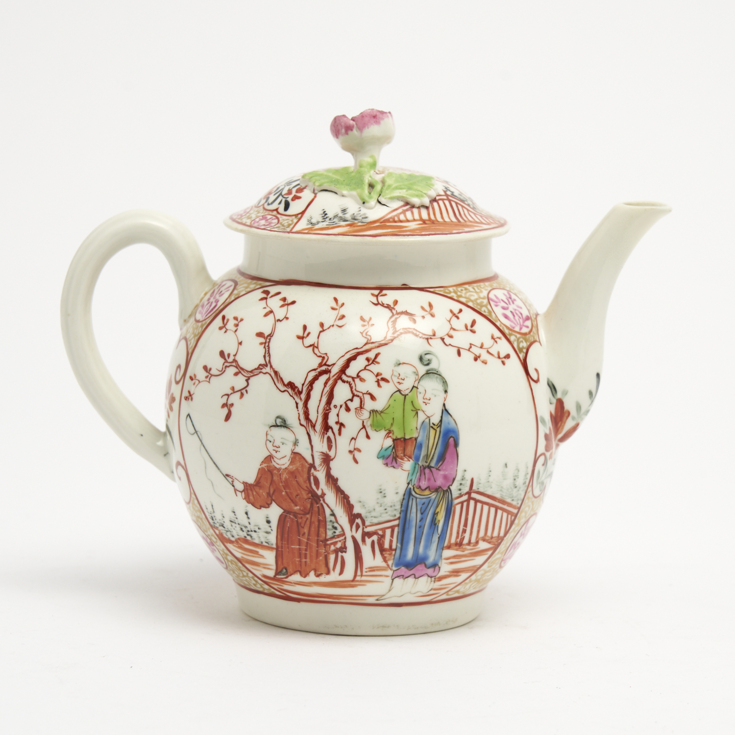 A FIRST PERIOD 18TH CENTURY WORCESTER DR WALL CHINOISERIE' TEAPOT (A/F RESTORATION) H.14.5CM